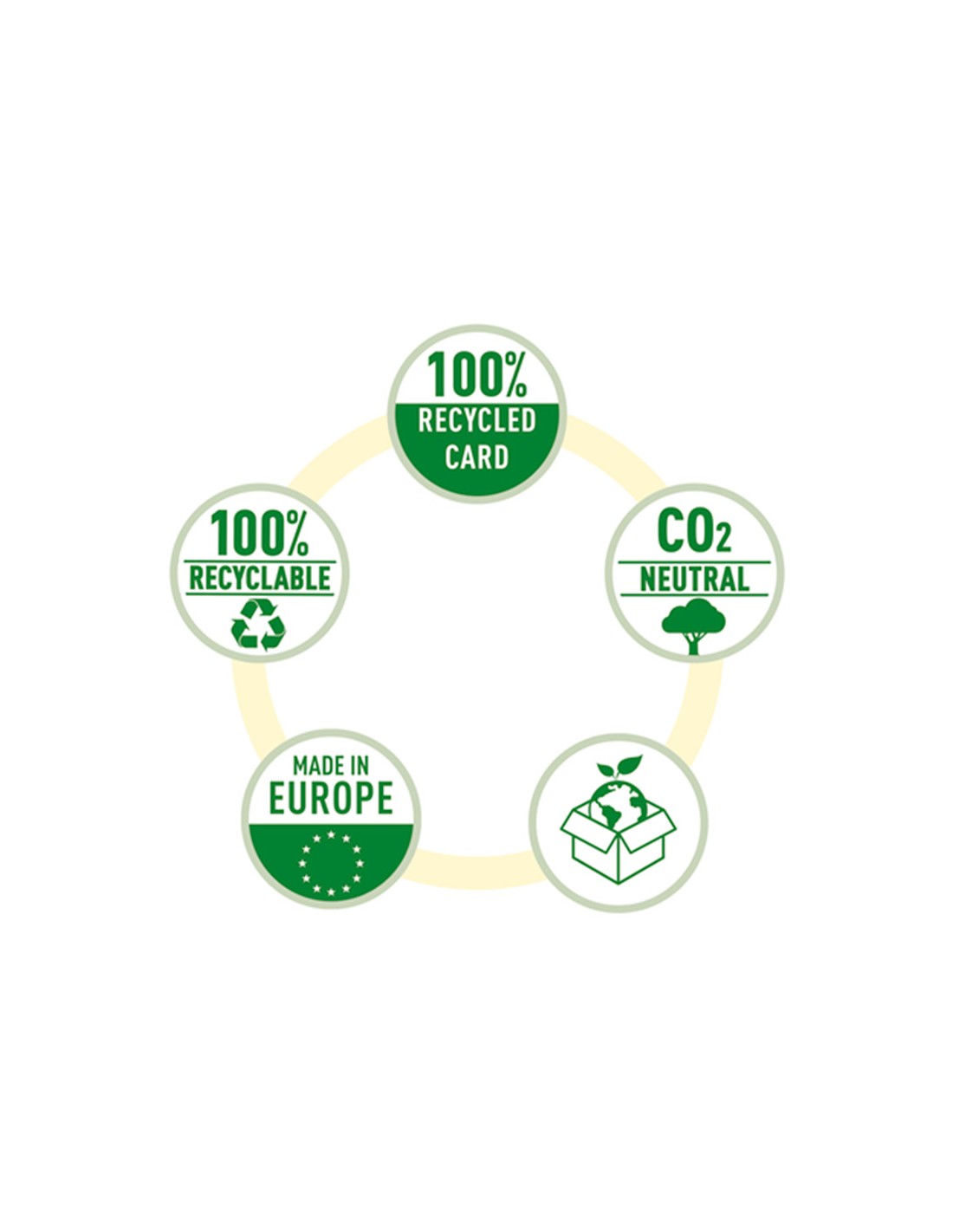 Archivador de palanca ecológico de calidad, fabricado con cartón 100% reciclado. Concepto de color moderno y fresco. Lomo de 72 mm de ancho. Formato DIN A4. Medidas 290 x 318 x 72 mm.