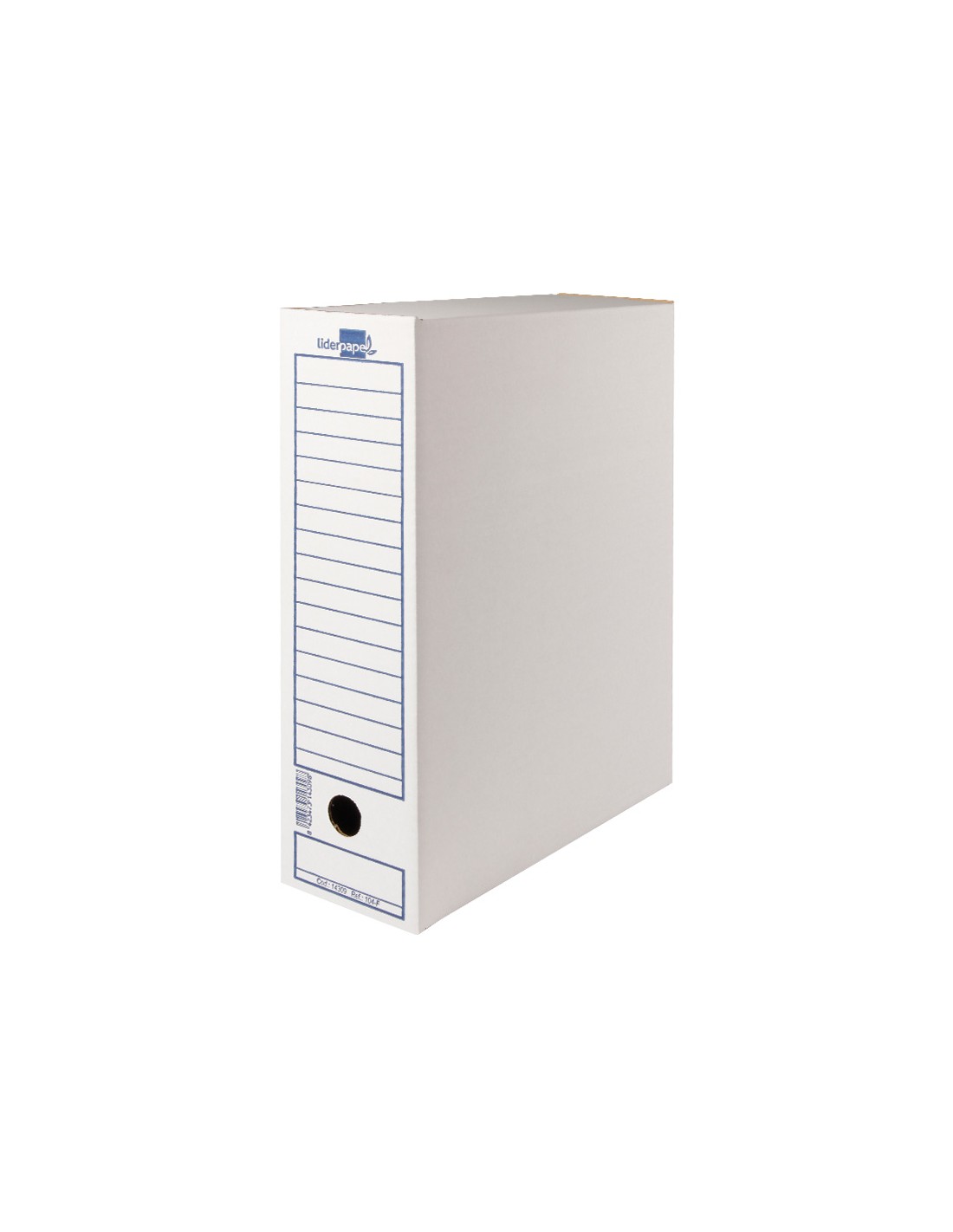 Caja archivo definitivo liderpapel 104 folio carton reciclado 325g/m2 lomo 100 mm blanco 365x100x251 mm