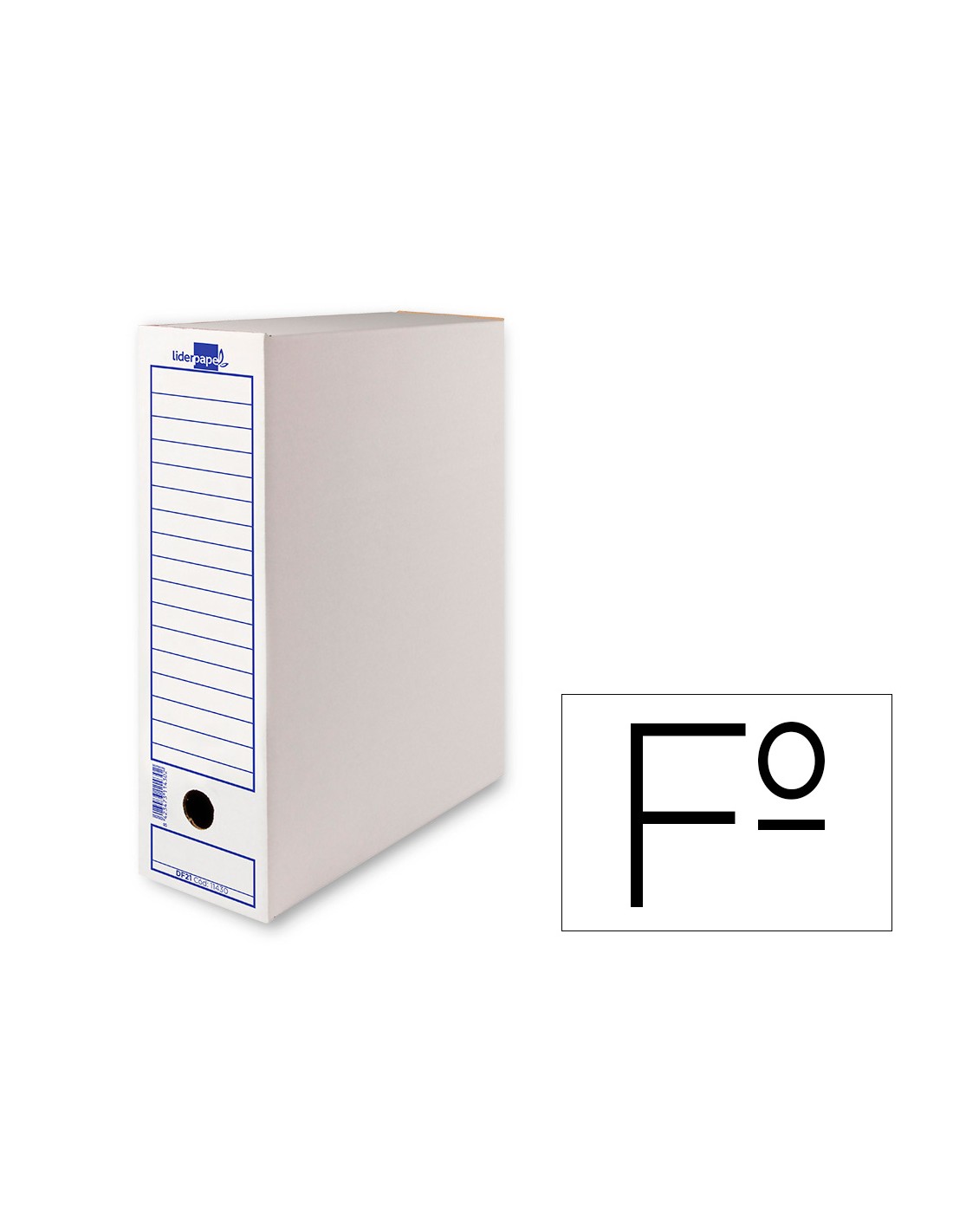 Caja de archivo definitivo para almacenar, organizar y proteger documentosy facturas tamaño folio. Con sistema de montaje manual muy simple. Fabri cada con cartón ondulado 100% reciclado y reciclable de 325g/m². Esta cajade archivo definitivo en color blanco tiene un lomo de 100 mm y sus medid as son 365x100x251 mm. Con ollao lateral y frontal acompañado de 2 zonasamplías de etiquetaje que permiten almacenarlas tanto en posición vertica l como horizontal. Esta caja de archivo definitivo te permitirá conservar tus documentos de forma ordenada al mismo tiempo que ahorrarás espacio, siendo así mucho más eficiente su almacenamiento. Compatible con los cajonescontendores Liderpapel 171283, 171284, 171289 y 171290.