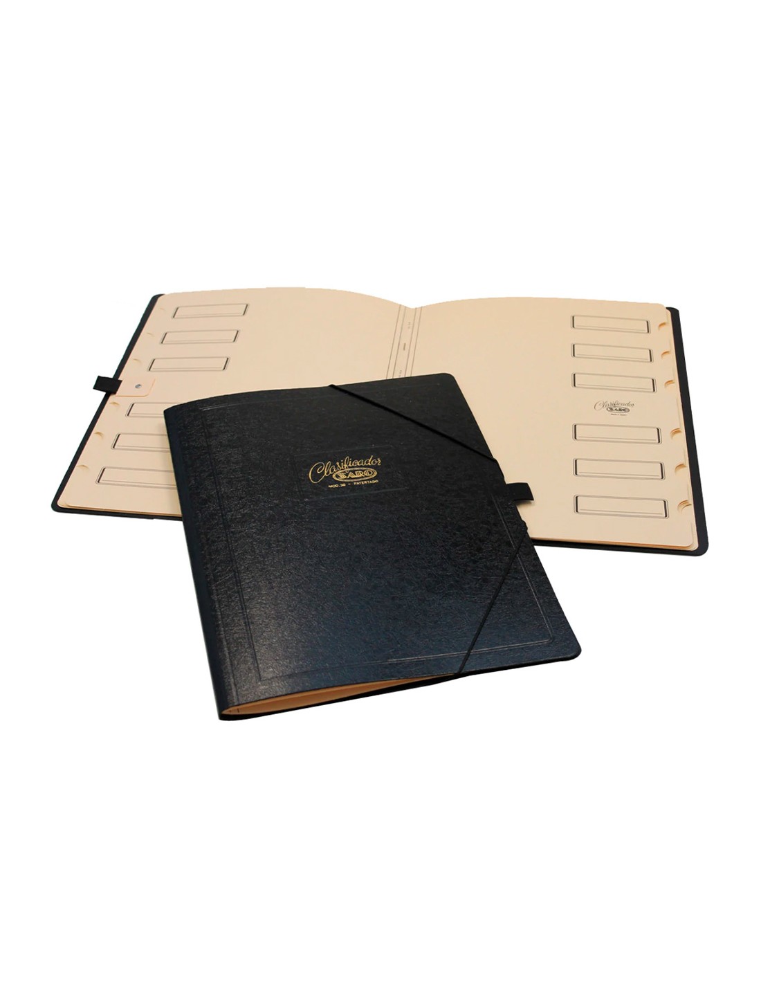 Fabricada con cubiertas en cartón esmaltado del nº 10. Con 12 departamentos. Con cierre de gomas. Tamaño folio prolongado.