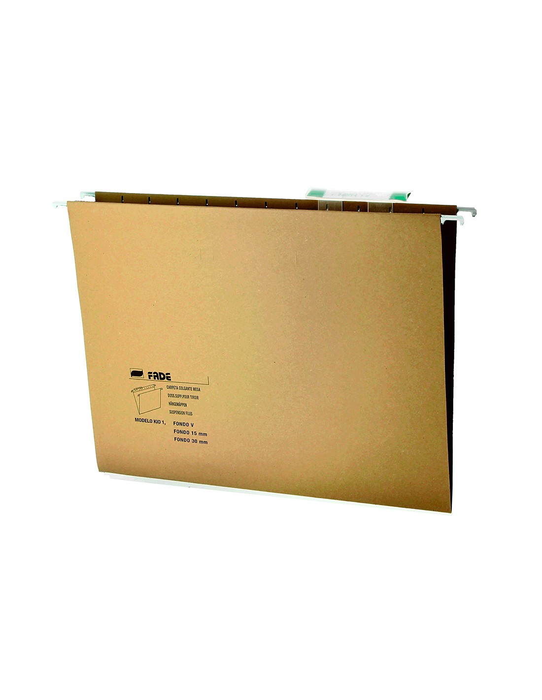 Fabricada en cartulina kraft eco de 230 g/m². Incluye visor superior de 10 mm. Con varilla metal flex. Lomo en V.