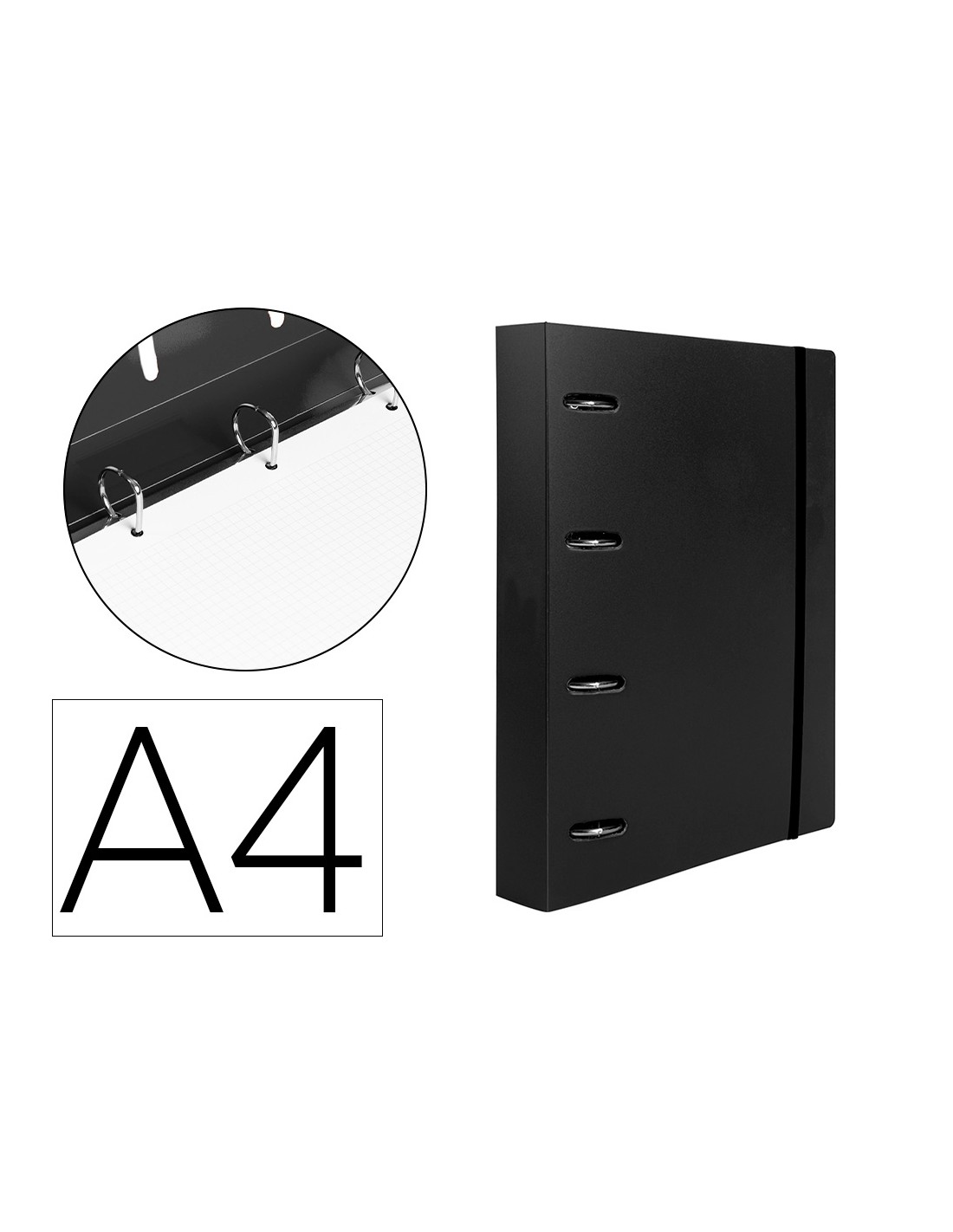Carpeta con recambio liderpapel a4 cuadro 5mm 100 hojas 80g polipropileno 4 anillas 40mm negro opaco