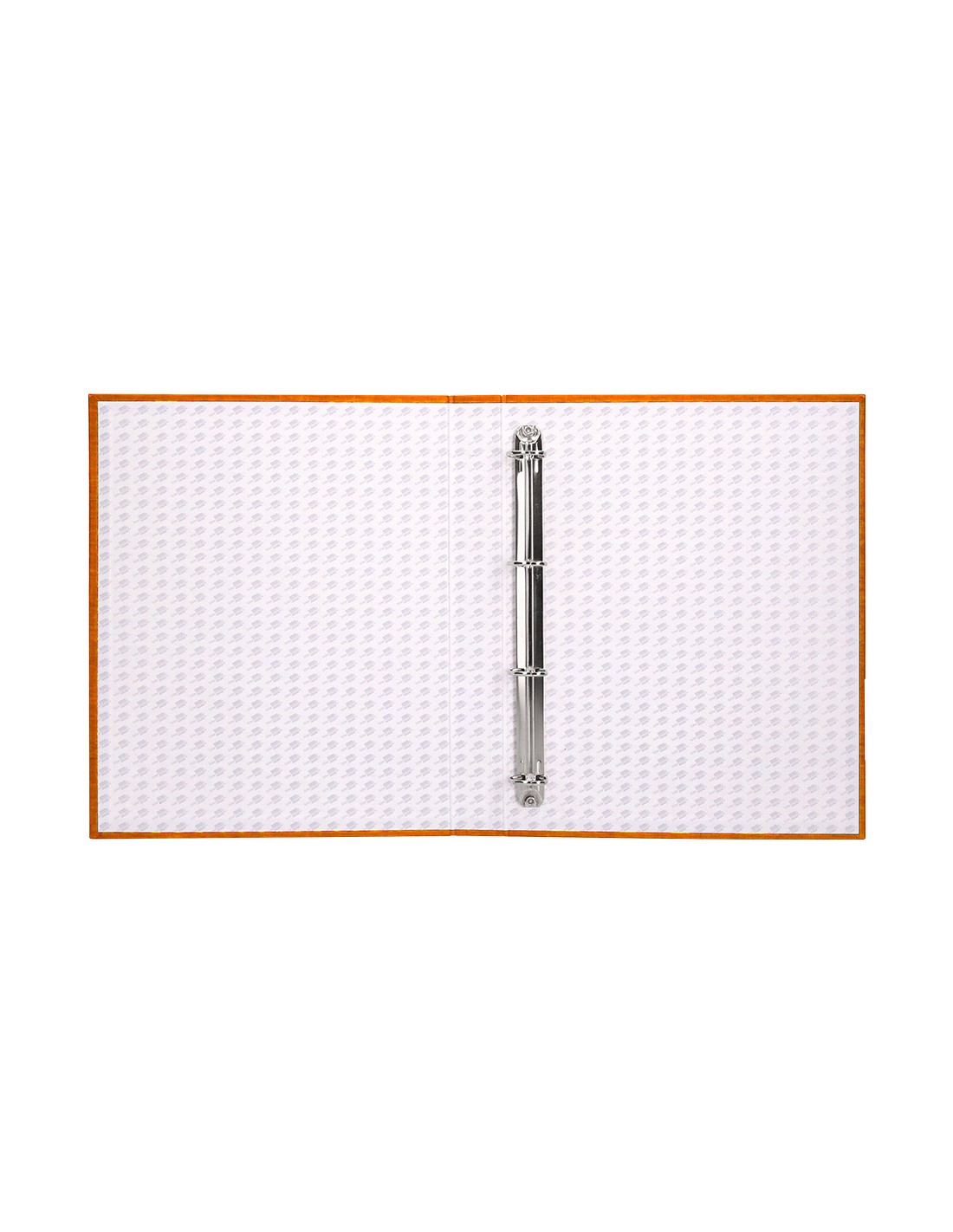 Carpeta cartón entrecolado de 1,75 mm de espesor, forrado con papel de encuadernación plastificado, gofrado tela en PVC. Con anillas mixtas. Tamaño folio. Medidas 260 x 332 mm.