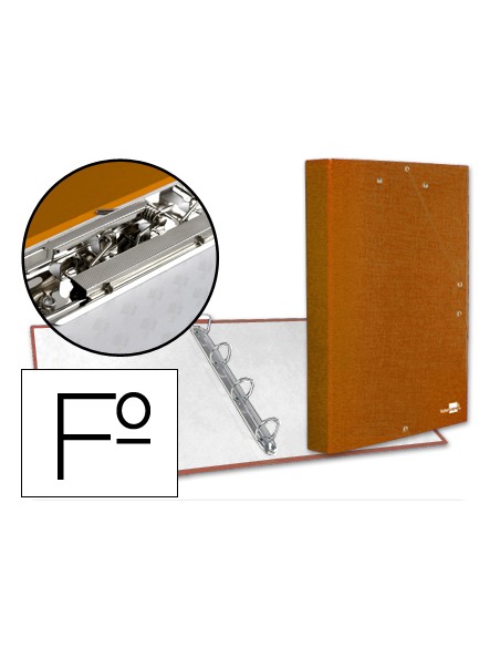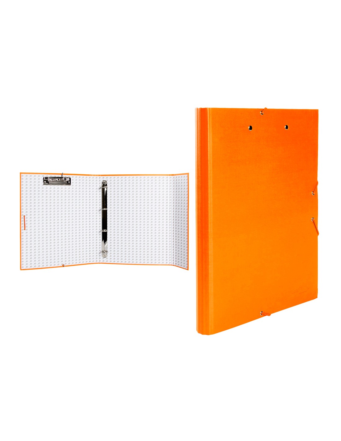 Carpeta de 4 anillas 25mm redondas liderpapel folio carton forrado paper coat naranja con miniclip y solapas
