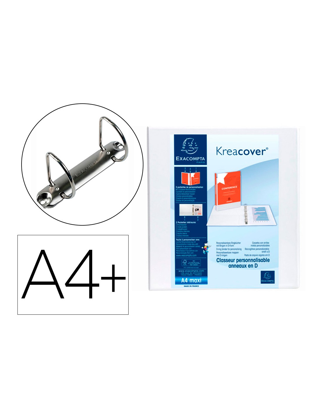 Carpeta exacompta canguro 2 anillas 60 mm din a4+ carton forrado polipropileno personalizable 3 bolsillos
