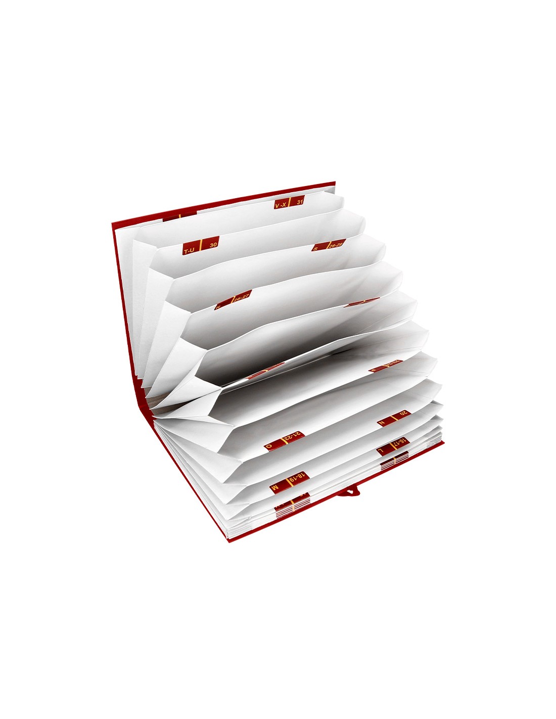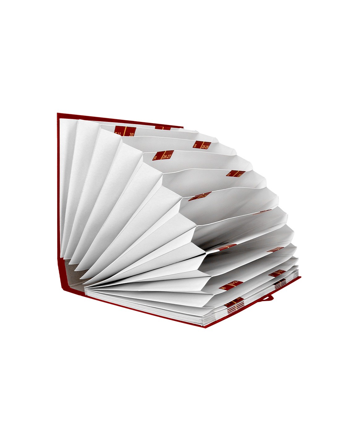 Carpeta de cartón forrado con materiales de primera calidad, con cinta de raso para una mayor resistencia y con guardas para un perfecto acabado. Con 20 departamentos A-Z y 1-31.