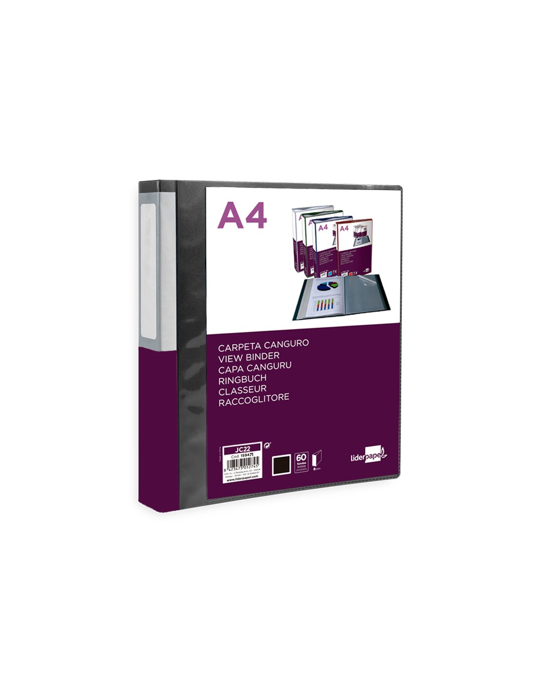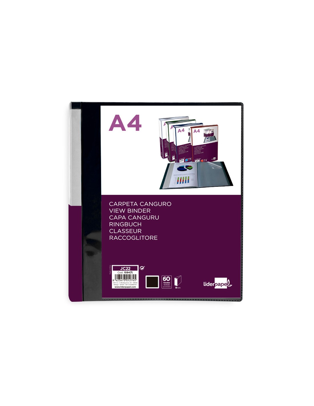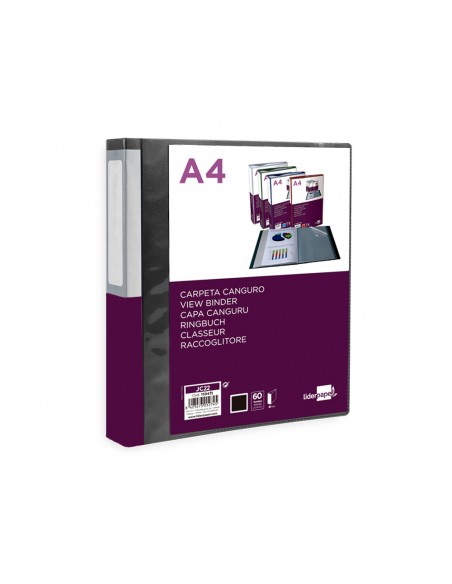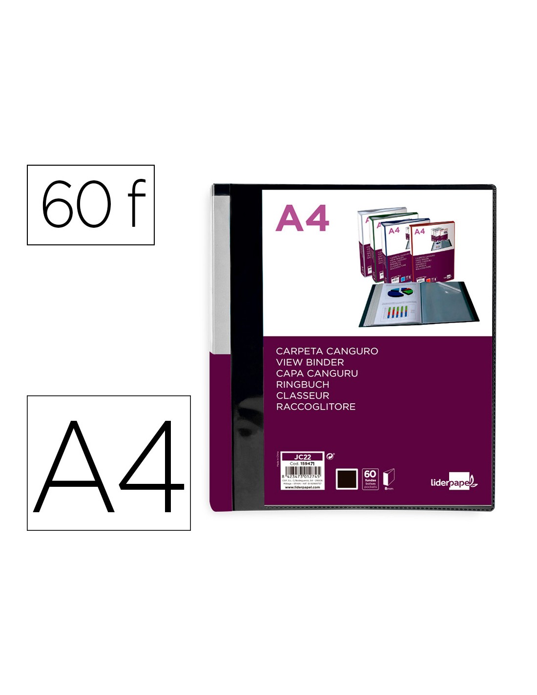 Carpeta liderpapel 60 fundas canguro pp din a4 negro opaco portada y lomo personalizable
