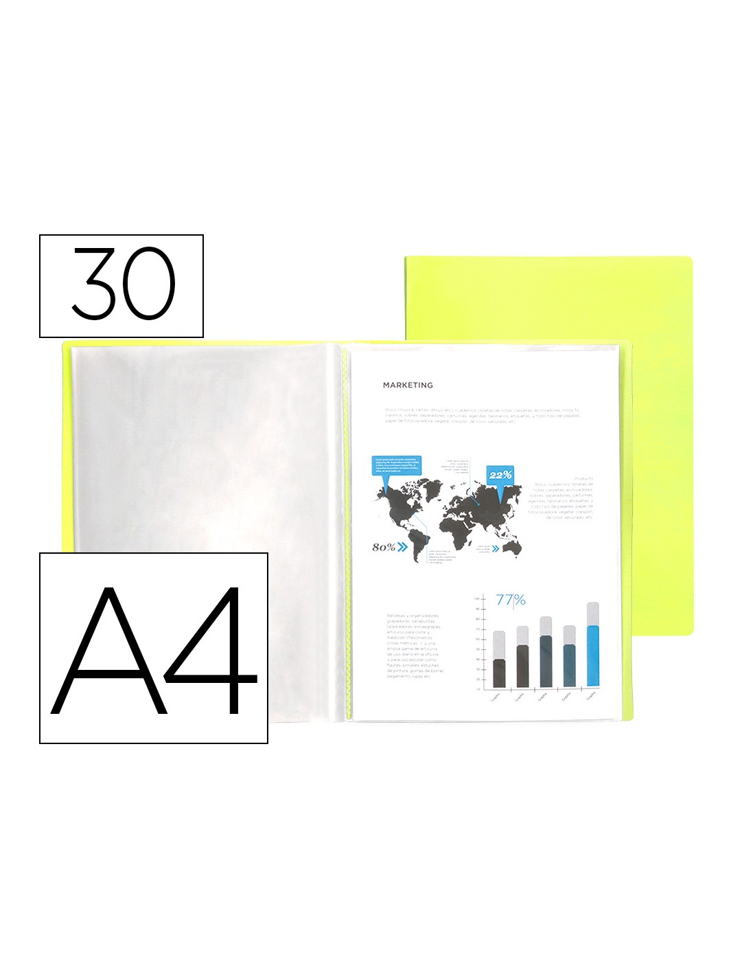 Carpeta liderpapel escaparate 30 fundas polipropileno din a4 amarillo fluor opaco