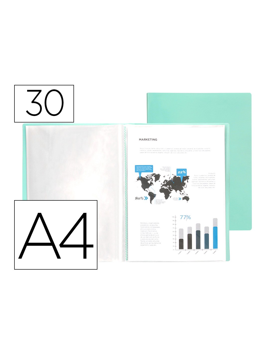 Carpeta liderpapel escaparate 30 fundas polipropileno din a4 verde manzana opaco