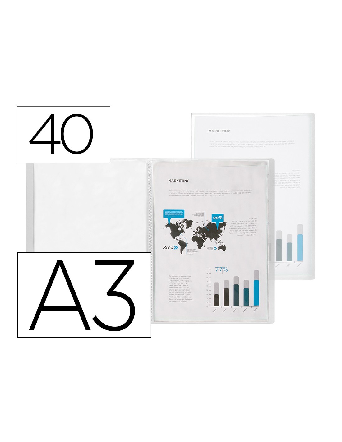Carpeta liderpapel escaparate 40 fundas polipropileno din a3 transparente translucido