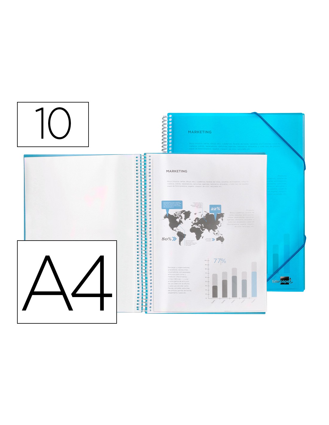 Carpeta liderpapel escaparate con espiral 10 fundas polipropileno din a4 azul
