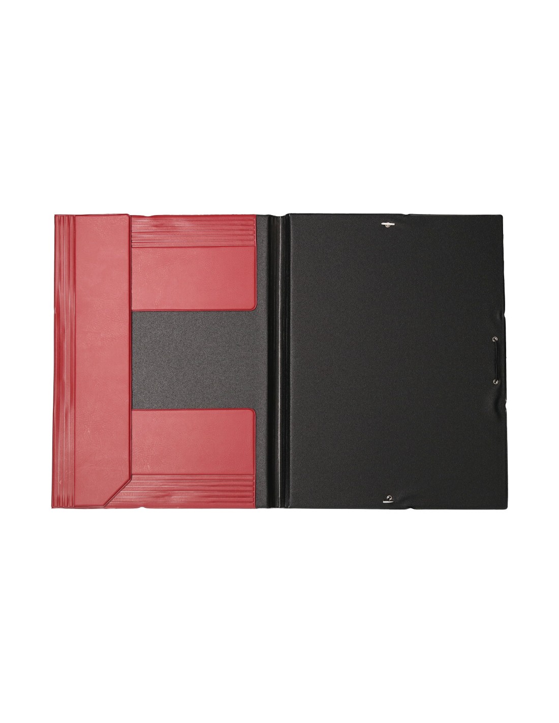 Carpeta fabricada en cartón forrado en PVC soldado unicolor. 3 mm de grosor. Cierre con gomas. Lomo flexible. Tamaño folio. Medidas 240 x 335 mm.