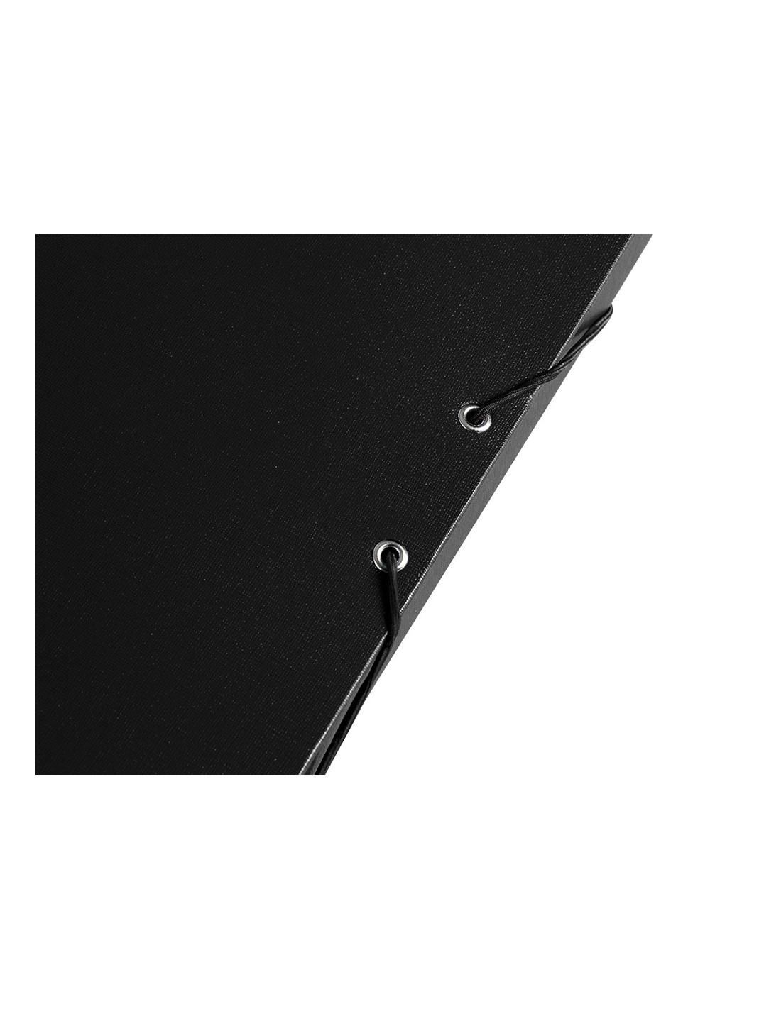 Carpeta para proyectos fabricada en cartón entrecolado de 1,9 mm de espesor, forrado gofrado tela de PVC y guarda interior. Con etiqueta identificativa para pegar en el lomo. Cierre con elástico. Tamaño folio. Medidas 250 x 350 mm.