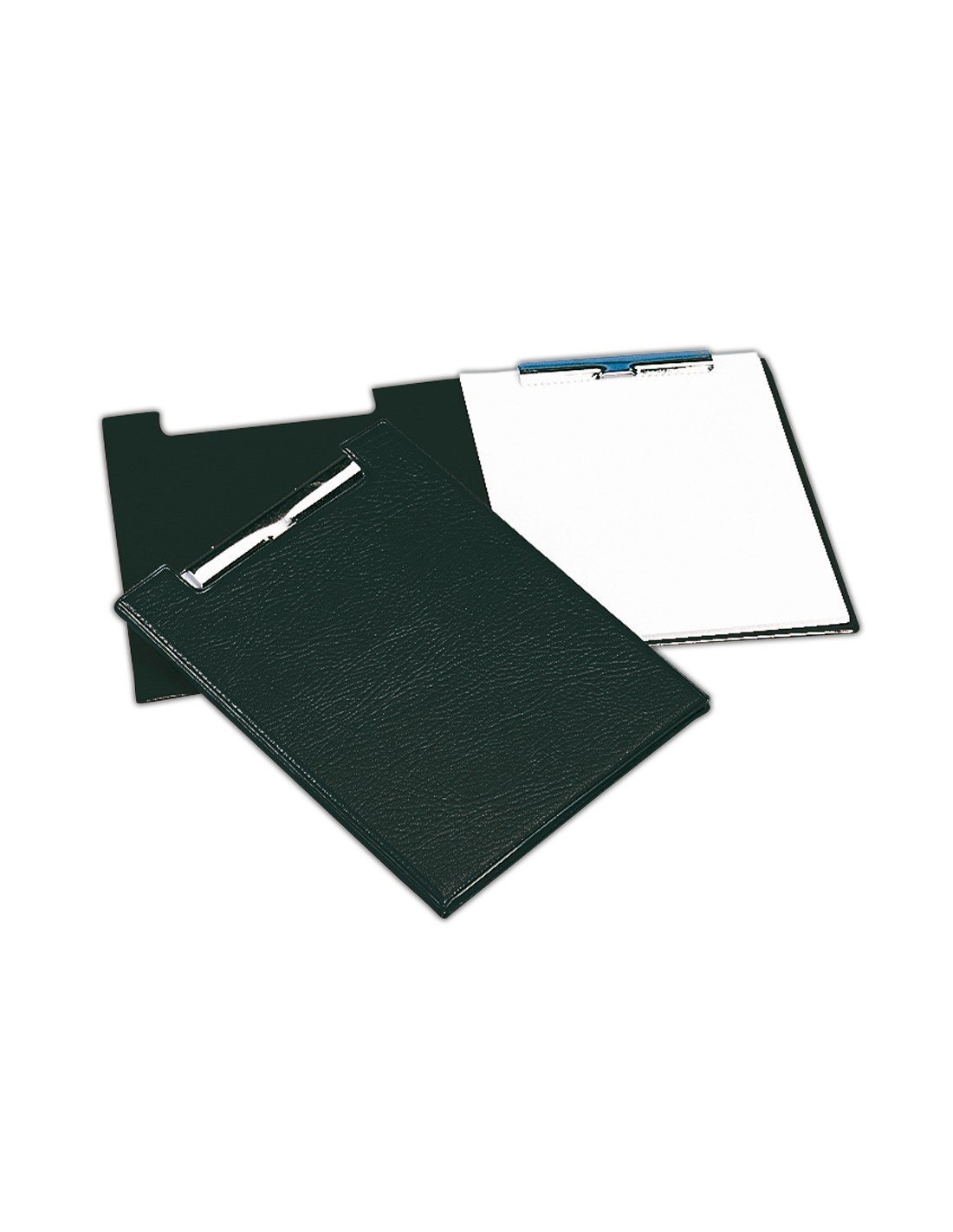 Carpeta con pinza. Fabricada en cartón forrado en plástico soldado, interior y exteriormente. Mecanismo niquelado. Color negro.