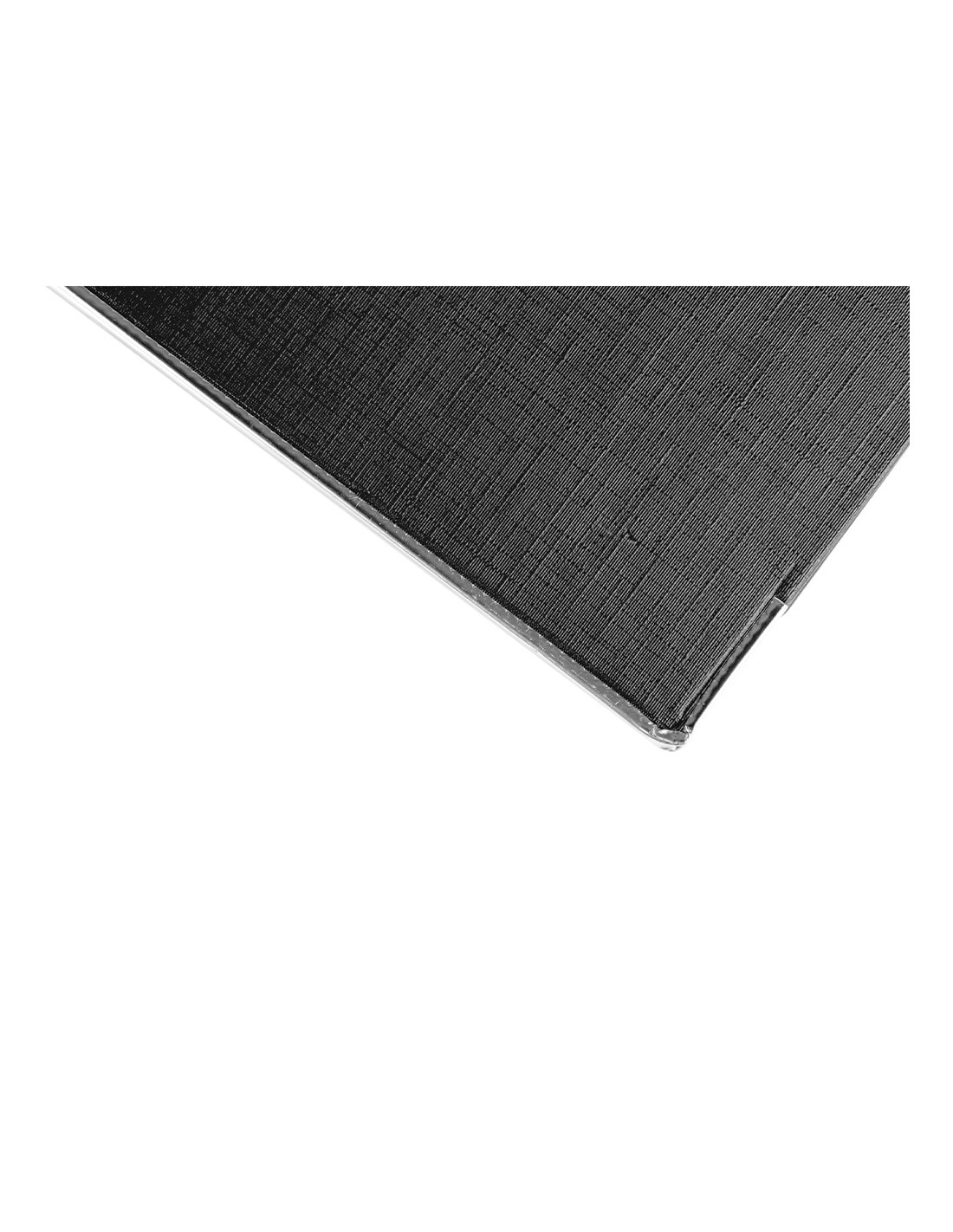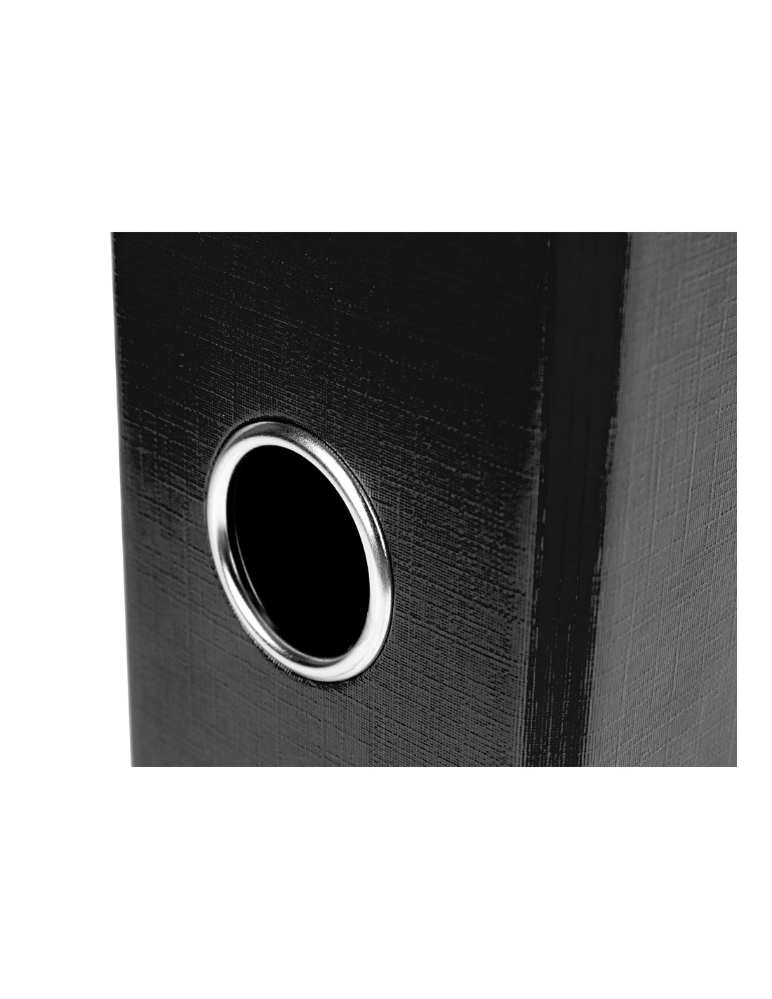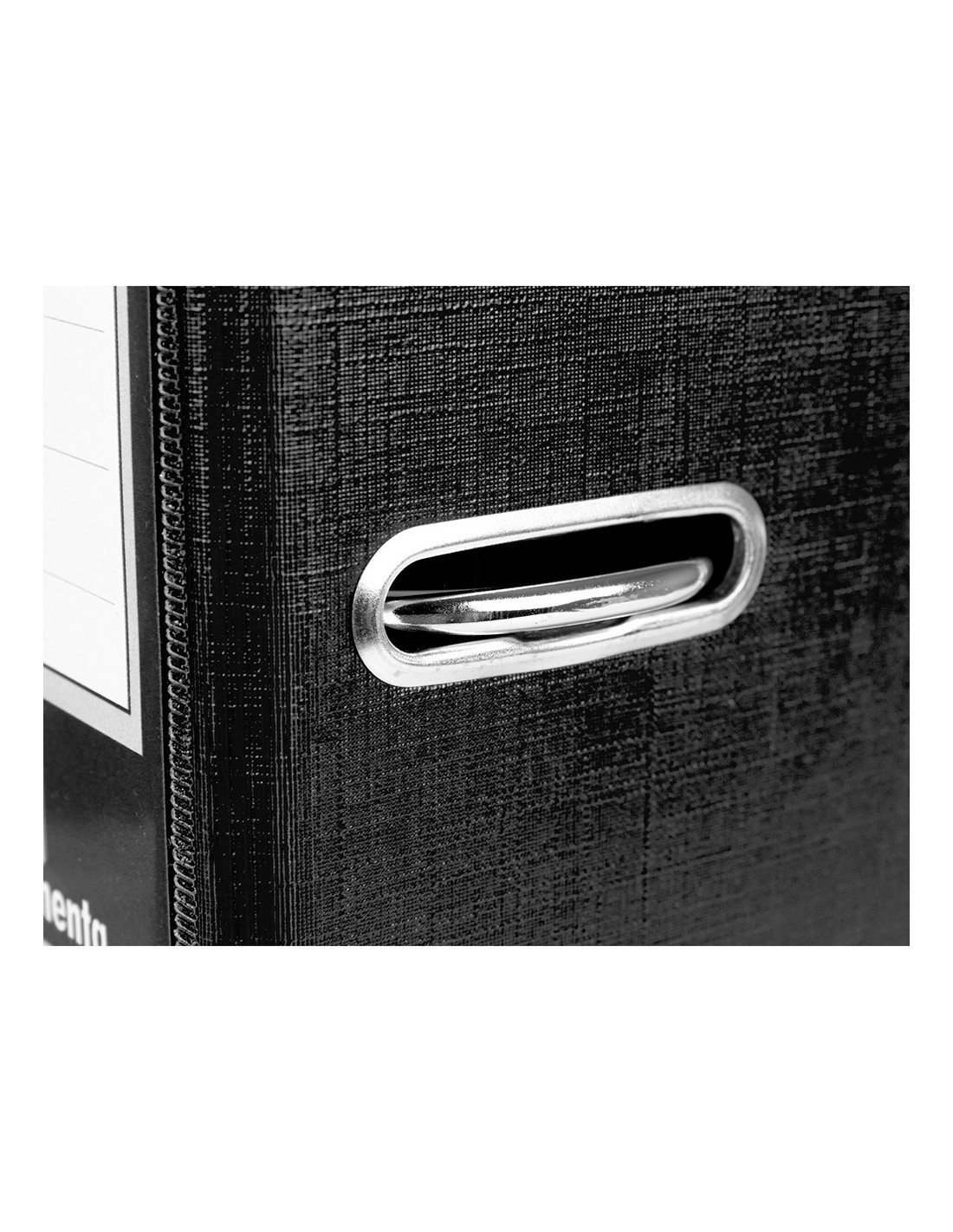 Fabricado en cartón entrecolado de 1,90 mm de espesor forrado con papel de encuadernación plastificado y gofrado con tela de PVC. Mecanismo de palanca de 75 mm con compresor metálico, cantoneras largas, ollao y tarjetero en el lomo con Rado®. Tamaño folio. Medidas exteriores del módulo 184 mm ancho x 350 mm alto x 290 mm fondo. Ancho de lomo 75 mm. Medidas 280 x 345 mm.