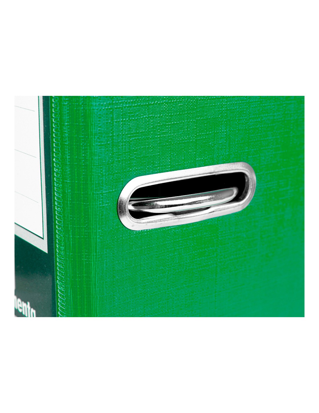 Fabricado en cartón entrecolado de 1,90 mm de espesor forrado con papel de encuadernación plastificado y gofrado con tela de PVC. Mecanismo de palanca de 75 mm con compresor metálico, cantoneras largas, ollao y tarjetero en el lomo con Rado®. Tamaño folio. Medidas exteriores del módulo 184 mm ancho x 350 mm alto x 290 mm fondo. Ancho de lomo 75 mm. Medidas 280 x 345 mm.