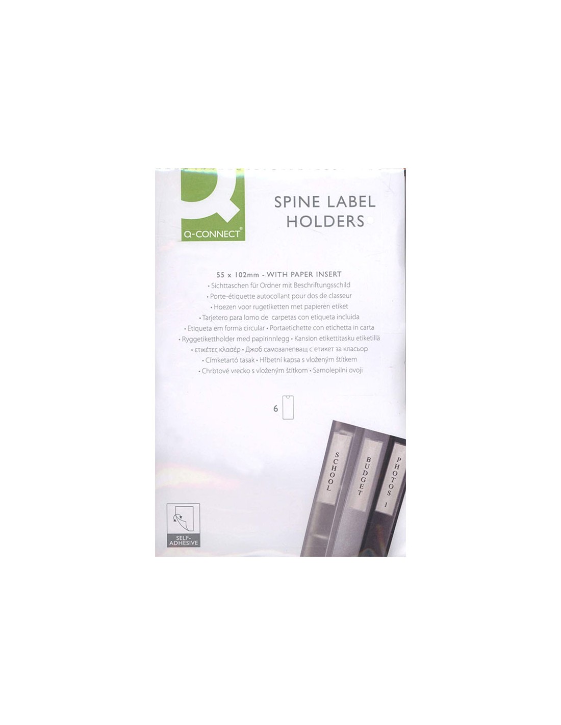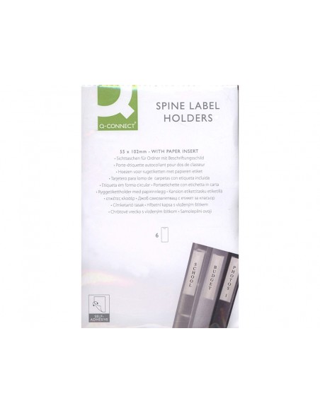 Funda autoadhesiva q-connect para lomo de carpeta 55x102mmpack de 6 unidades
