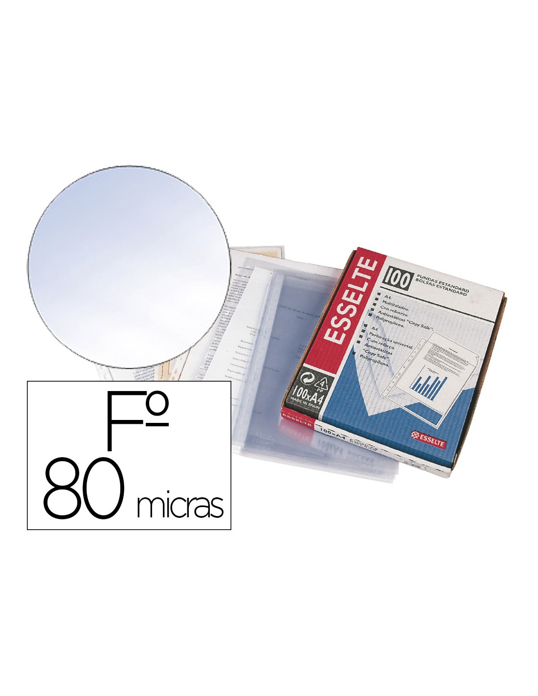 Funda multitaladro esselte folio pvc cristal 80 mc con refuerzo caja de 100 unidades