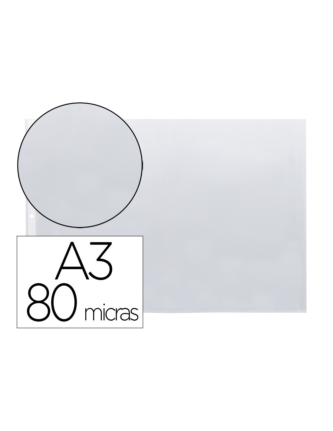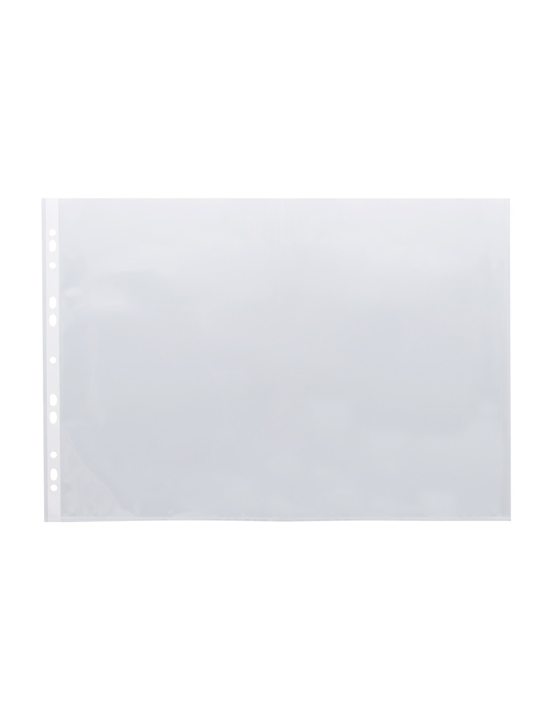 Funda multitaladro para protección y archivo de documentos. Con abertura lateral plegable, que permite convertir el formato DIN A3 apaisado en DIN A4 vertical. Fabricada en polipropileno transparente liso. 11 taladros. Grosor 80 micras. Formato DIN A3. La bolsa de 10 unidades.