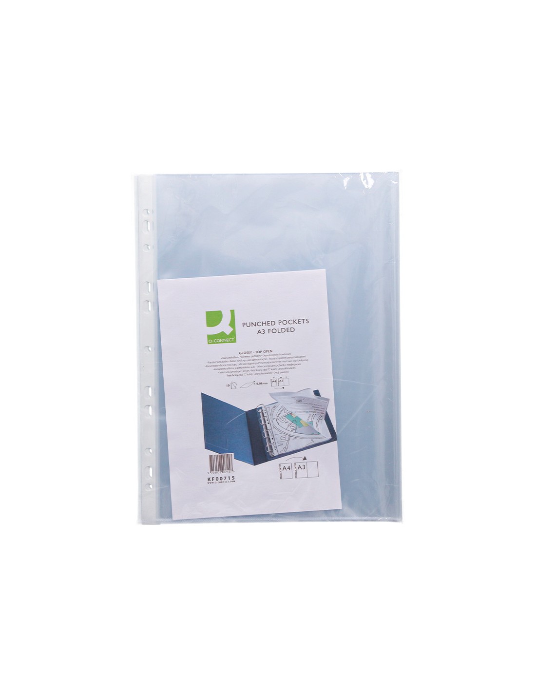 Funda multitaladro q-connect din a3 apaisada 80 micras cristal con apertura superior - bolsa de 10