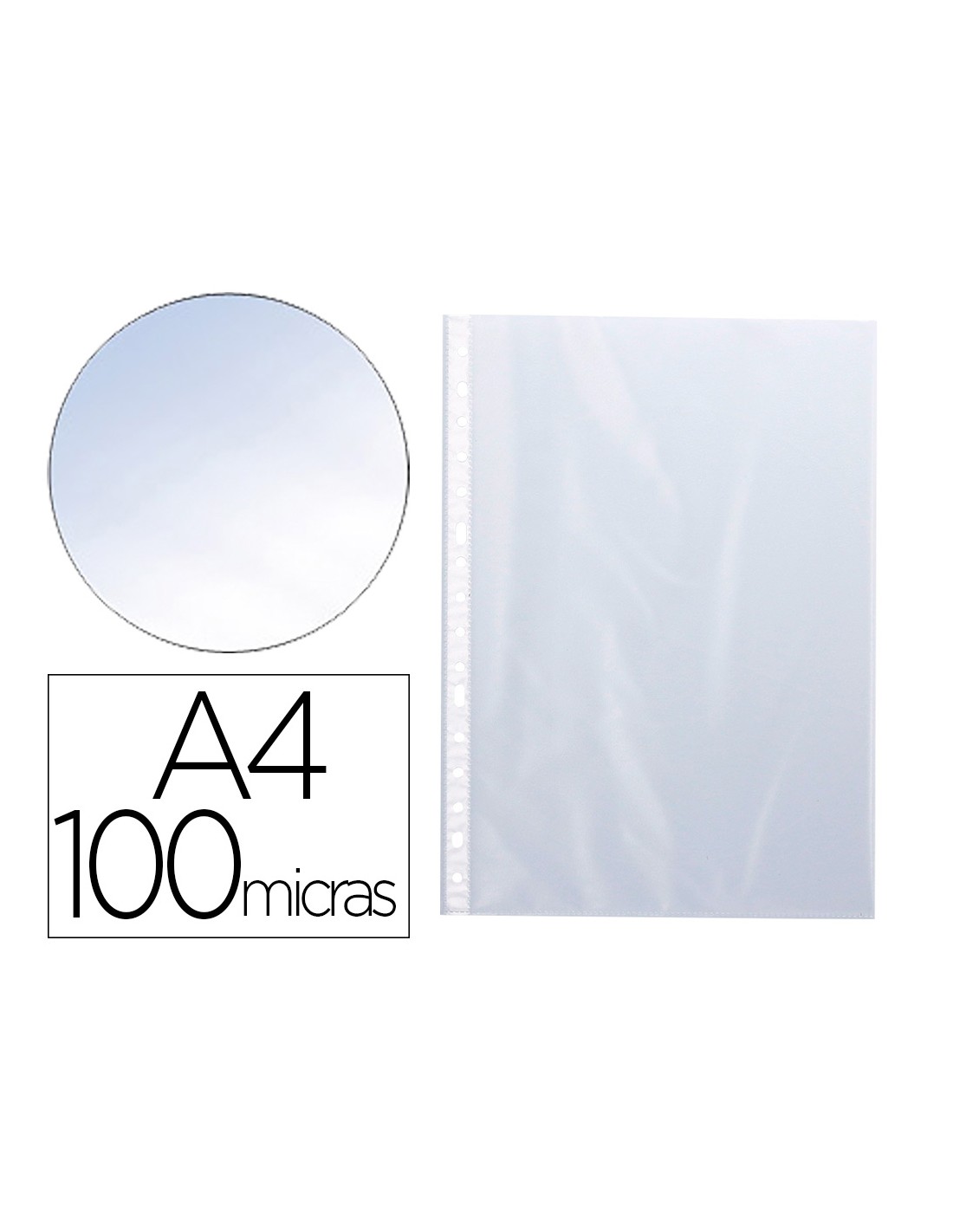 Funda para la protección y archivo de documentos. Fabricada en polipropileno cristal. 11 taladros. Grosor 100 micras. Formato DIN A4.