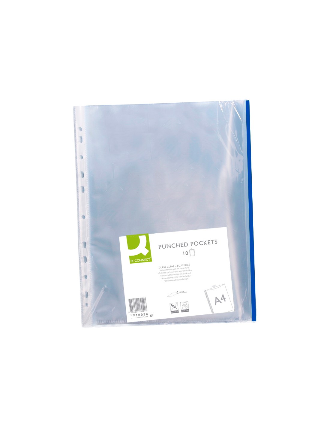 Funda multitaladro q-connect din a4 70 mc pp cristal con borde azul bolsa de 10 unidades