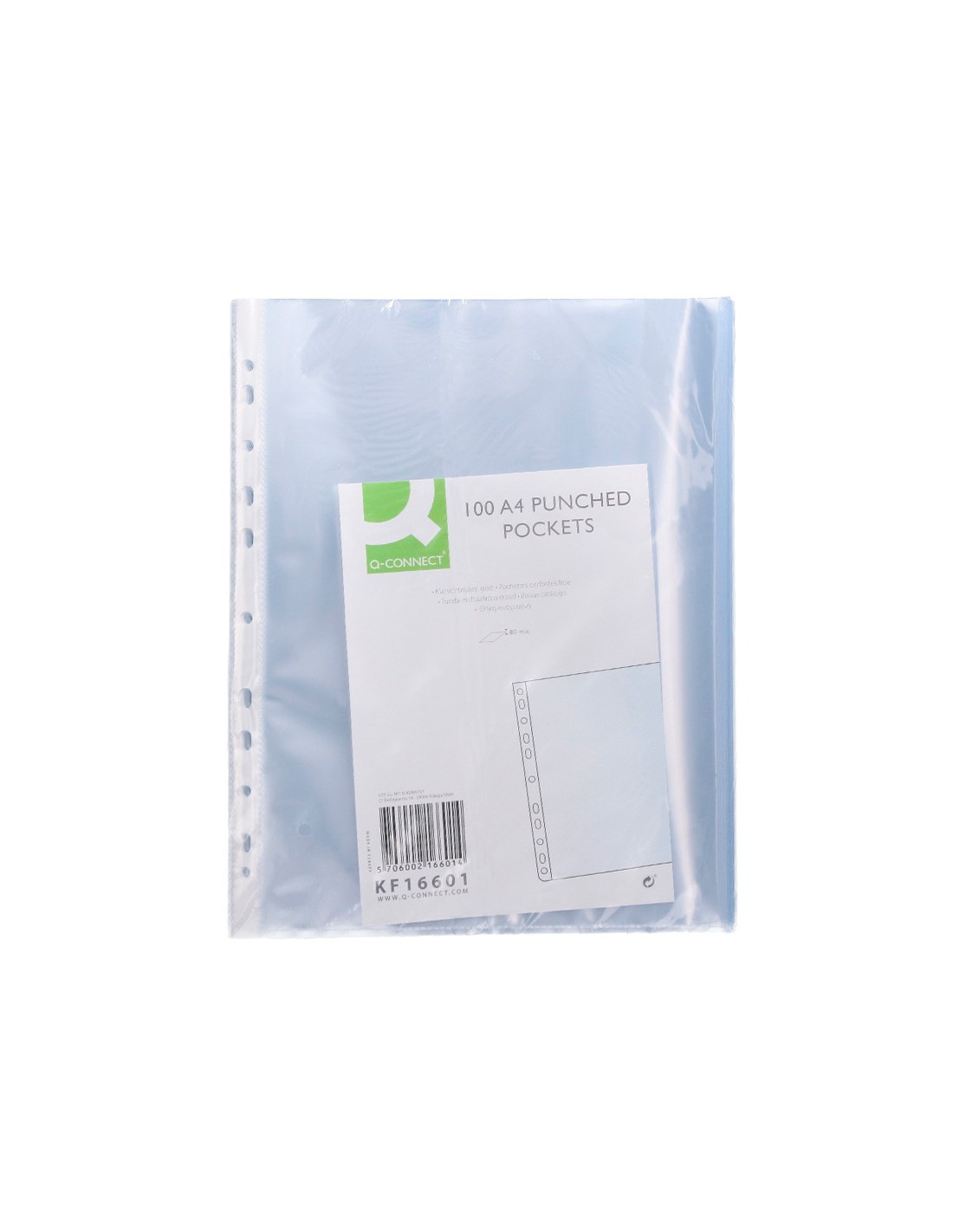 Funda multitaladro q-connect din a4 80 mc cristal bolsa de 100 unidades