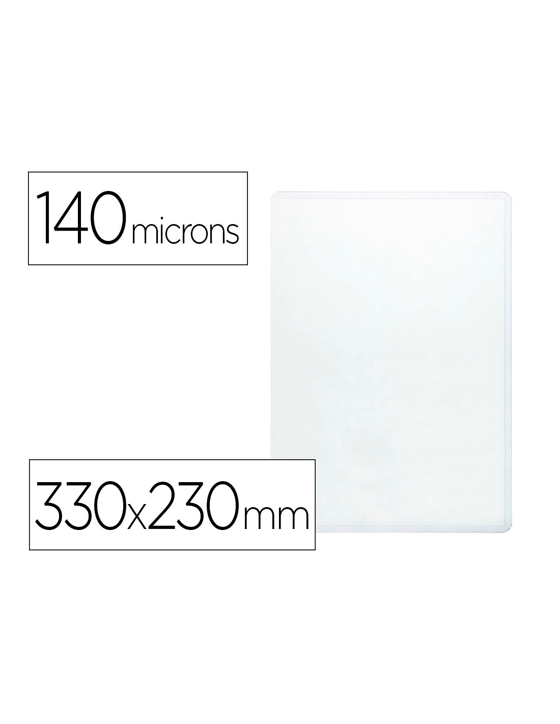 Adecuada para la protección y presentación de documentos. Fabricada en PVC transparente. Contorno soldado en U. Abertura superior con desmentido. 140 micras. Tamaño folio.