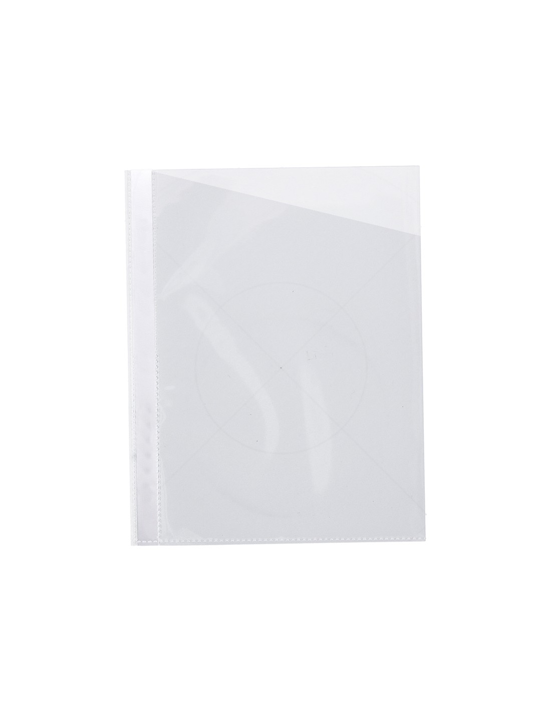 Funda transparente fabricada en PVC de 90 micras. Con soldadura parcial lateral para fácil acceso a los documentos. Refuerzo incoloro en el lomo. Sin taladros. La caja de 100 unidades.