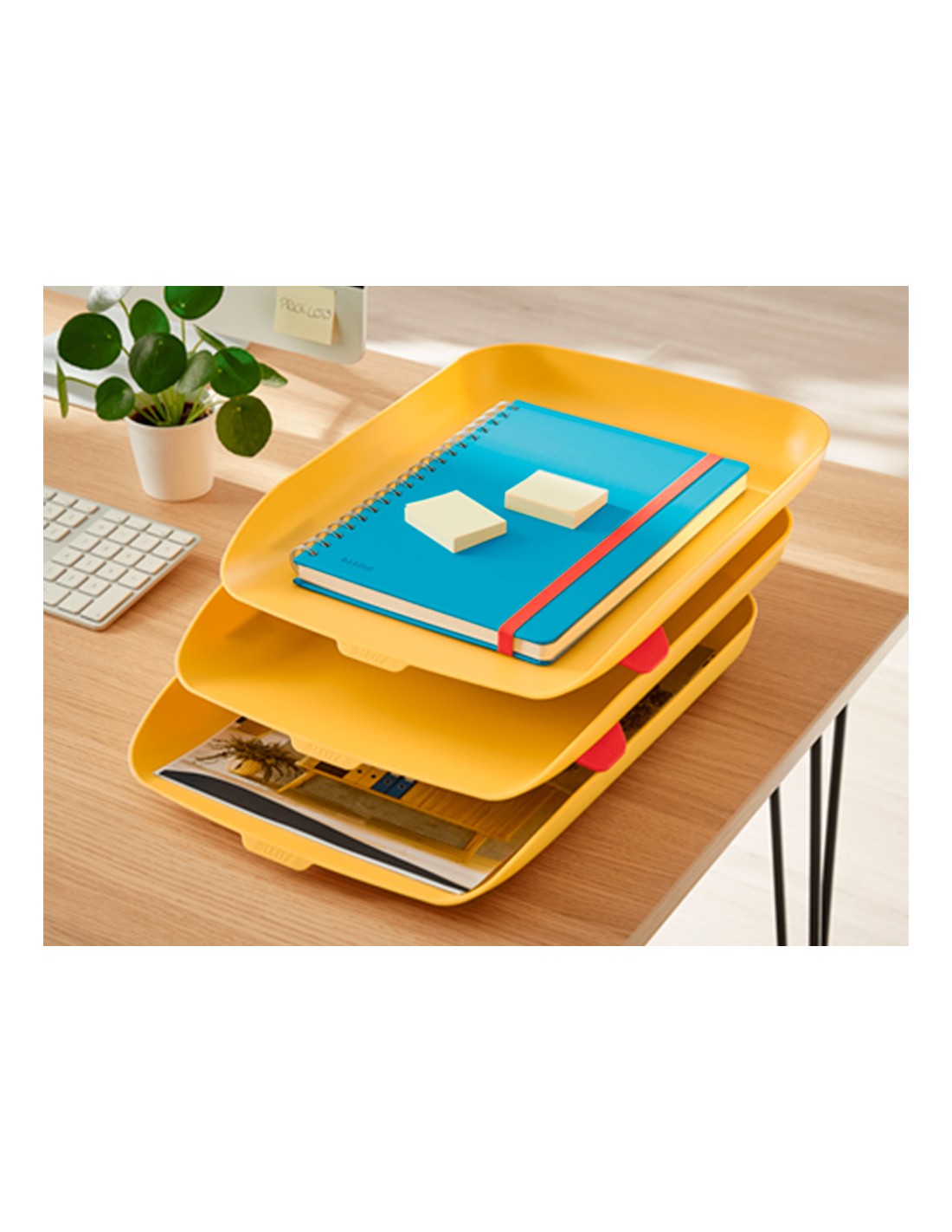 Bandeja sobremesa plastico leitz cosy set de 3 unidades amarillo 274x120x456 mm