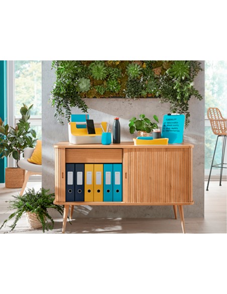 Robusta bandeja portadocumentos de gran capacidad y máxima calidad. Parte del sistema modular de bandejas portadocumentos Plus de Leitz en el que las tres medidas pueden apilarse de forma vertical o escalonada. Diseño y color a juego con la gama de archivo de sobremesa Plus de Leitz.