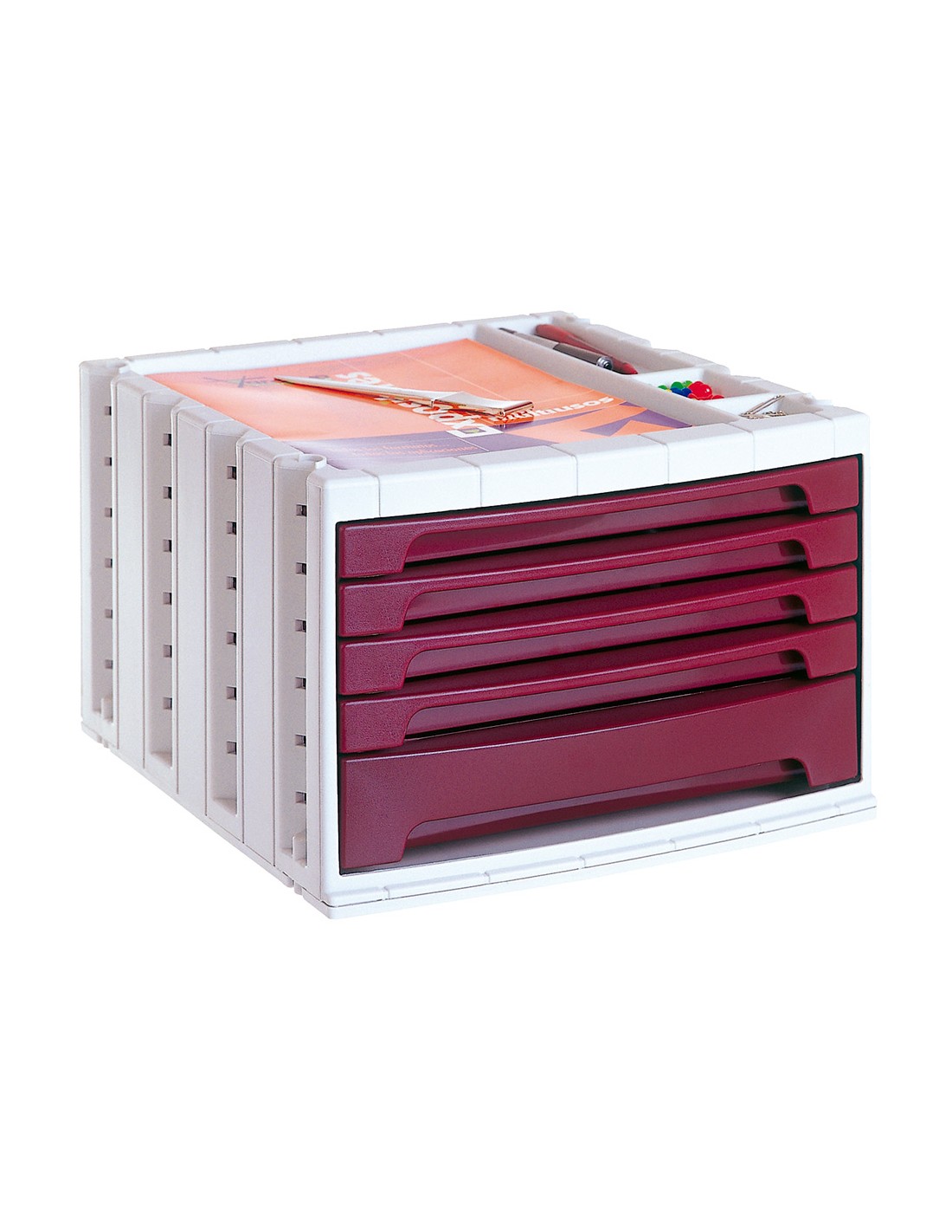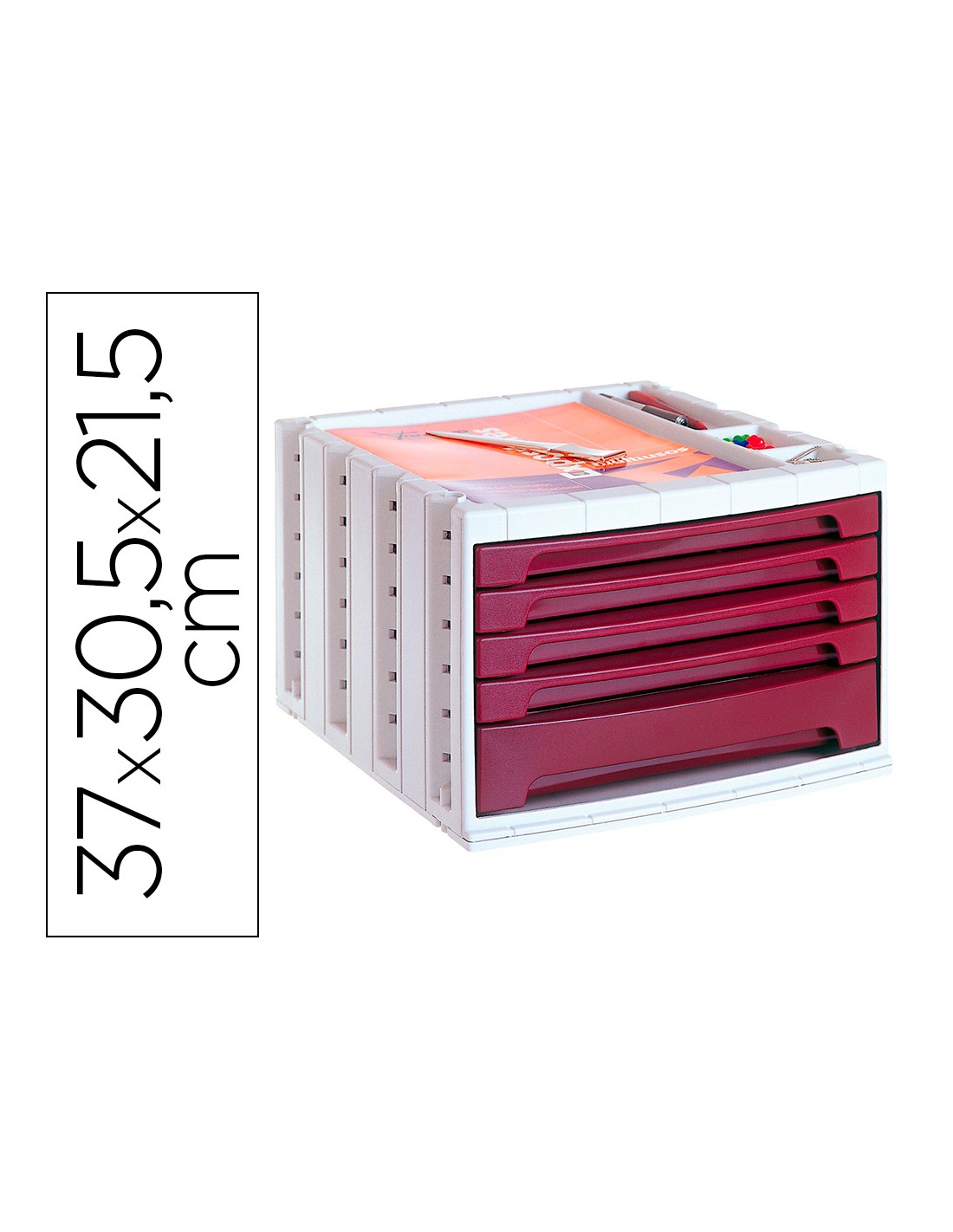 Fichero cajones de sobremesa archivo 2000 305x370x215 mm bandeja organizadora superior 5 cajones burdeos opaco