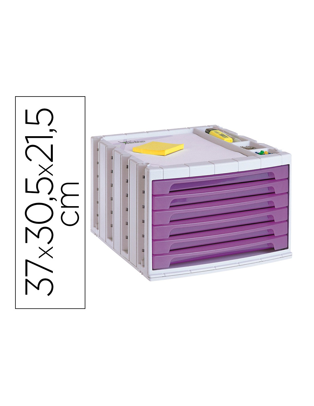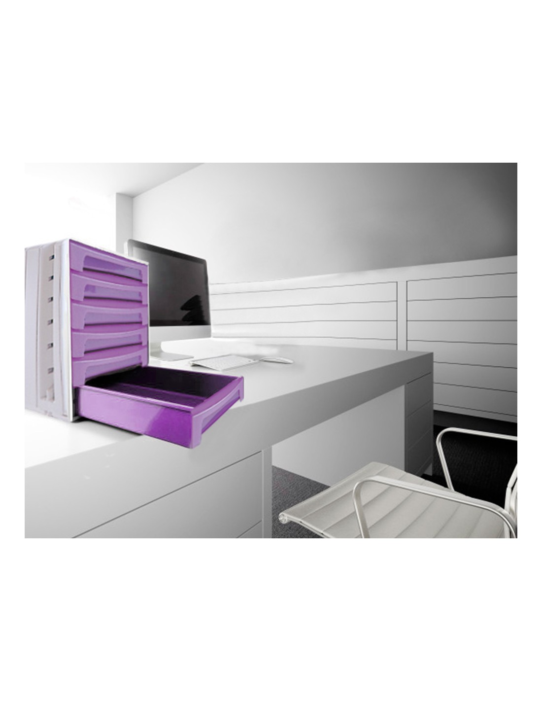 Fichero cajones de sobremesa archivo 2000 305x370x215 mm bandeja organizadora superior 6 cajones violeta translucido