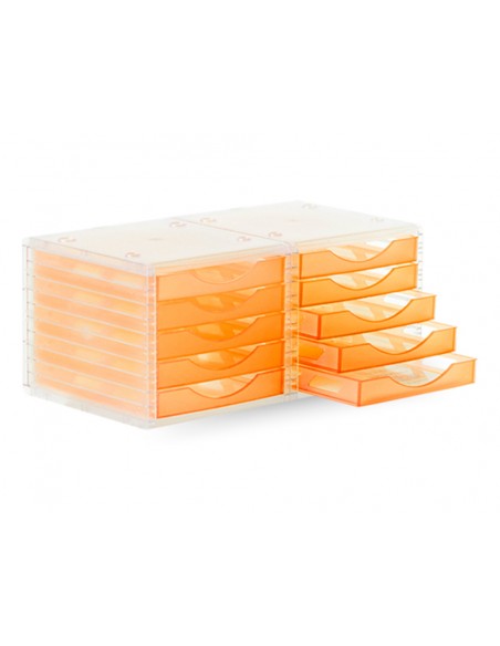 Fichero cajones de sobremesa archivo 2000 340x270x260 mm apilables 5 cajones naranja mandarina translucido