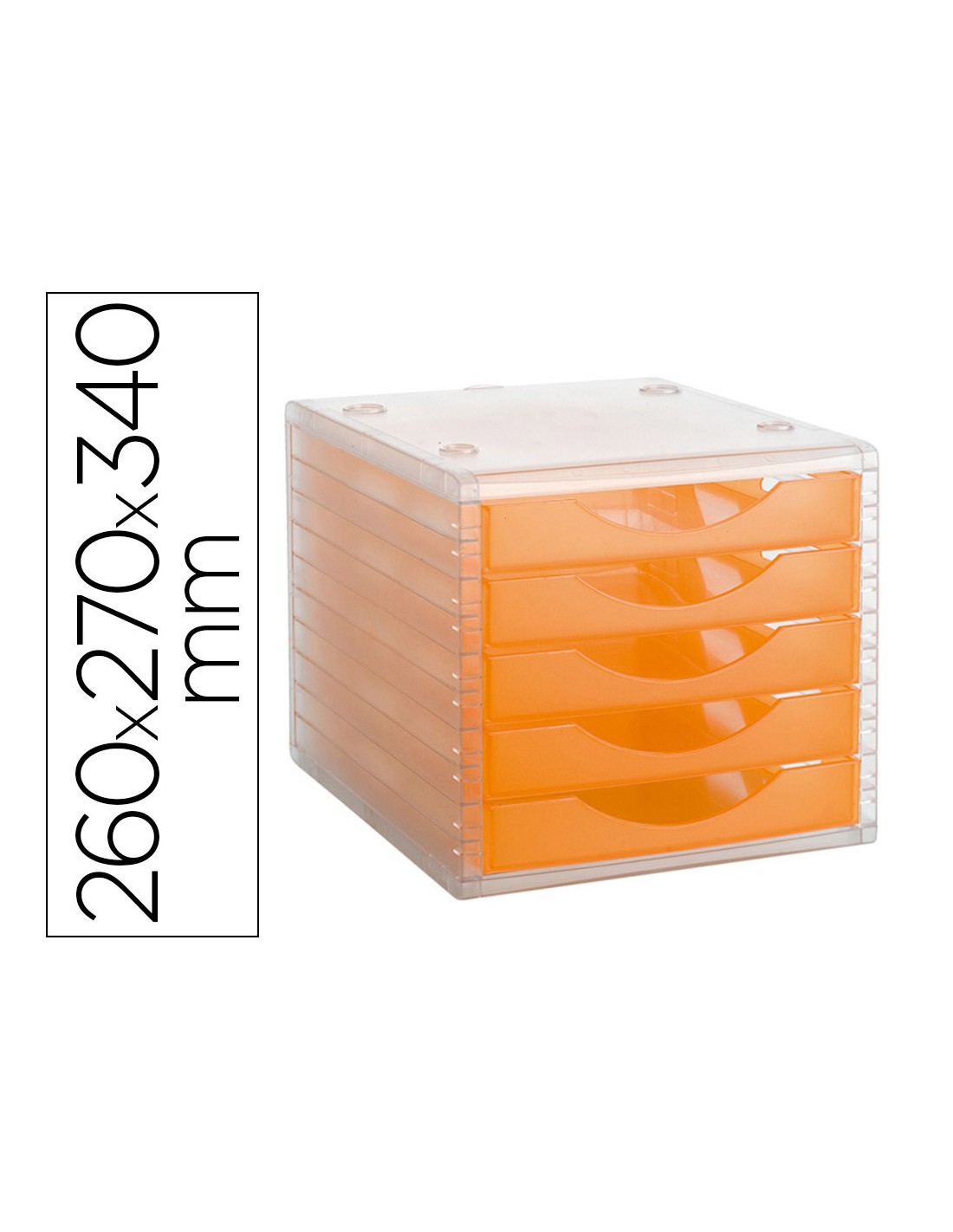 Fichero cajones de sobremesa archivo 2000 apilable 5 cajones naranja translucido 260x270x340 mm