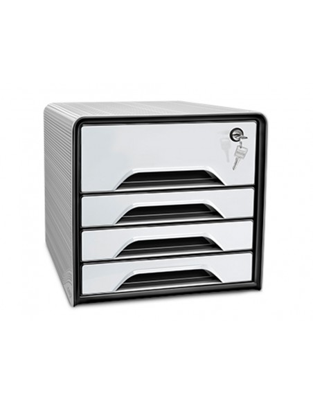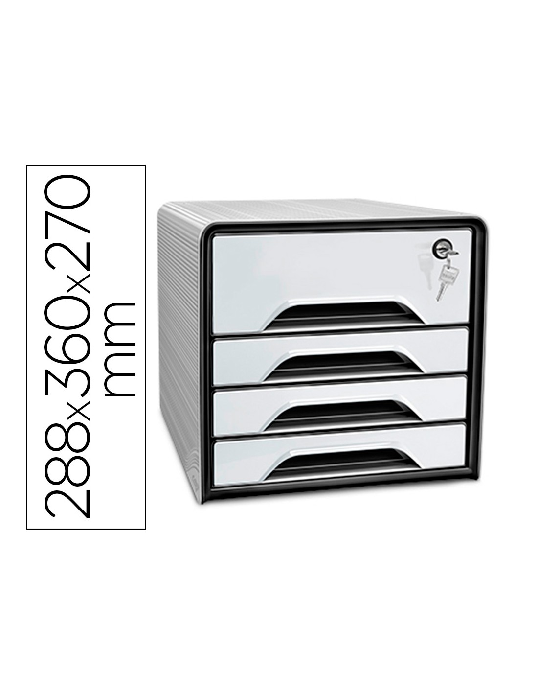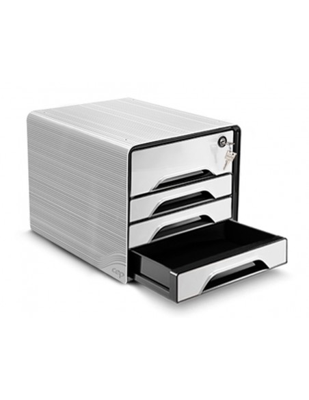 Fichero cajones de sobremesa cep smoove secure con cerradura 4 cajones color blanco/negro 288x360x270 mm