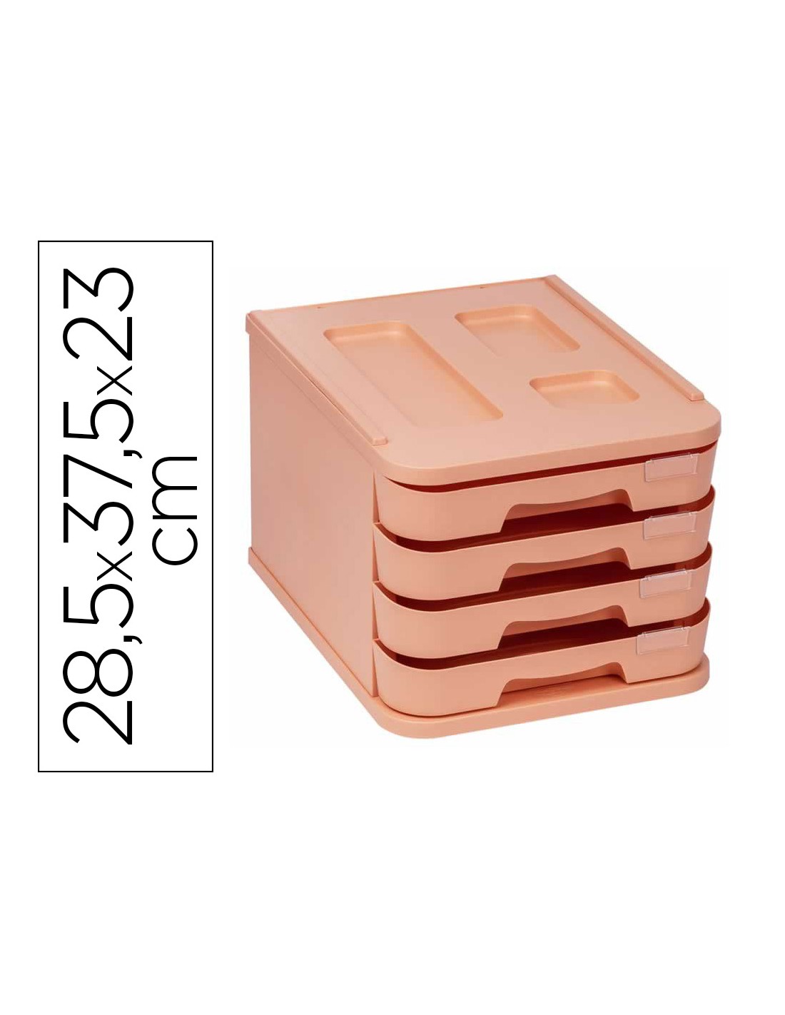 Fichero cajones de sobremesa faibo plastico 100% reciclable 4 cajones naranja pastel 28,5x37,5x23 cm