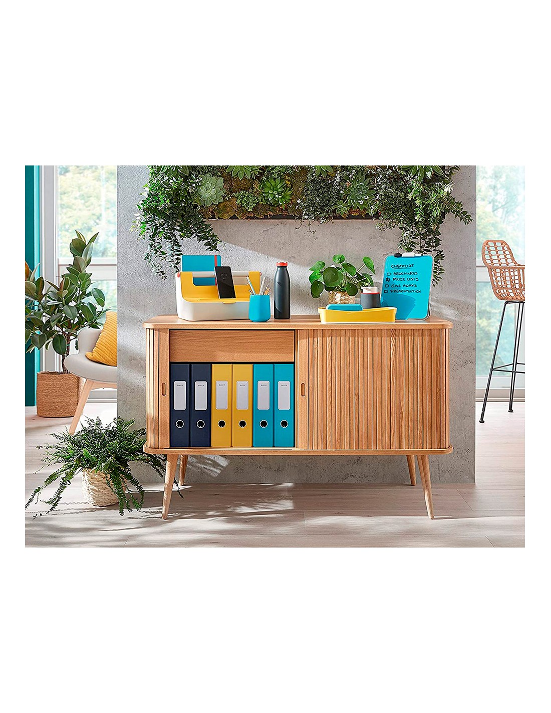 Buc de dos cajones con diseño minimalista. Libre de BPA y BPS. Un cajón pequeño y otro grande para documentos DIN A4 y DIN A5. Complemento perfecto para el hogar y la oficina por su almacenamiento eficiente. Medidas 275 x 145 x 250 mm.
