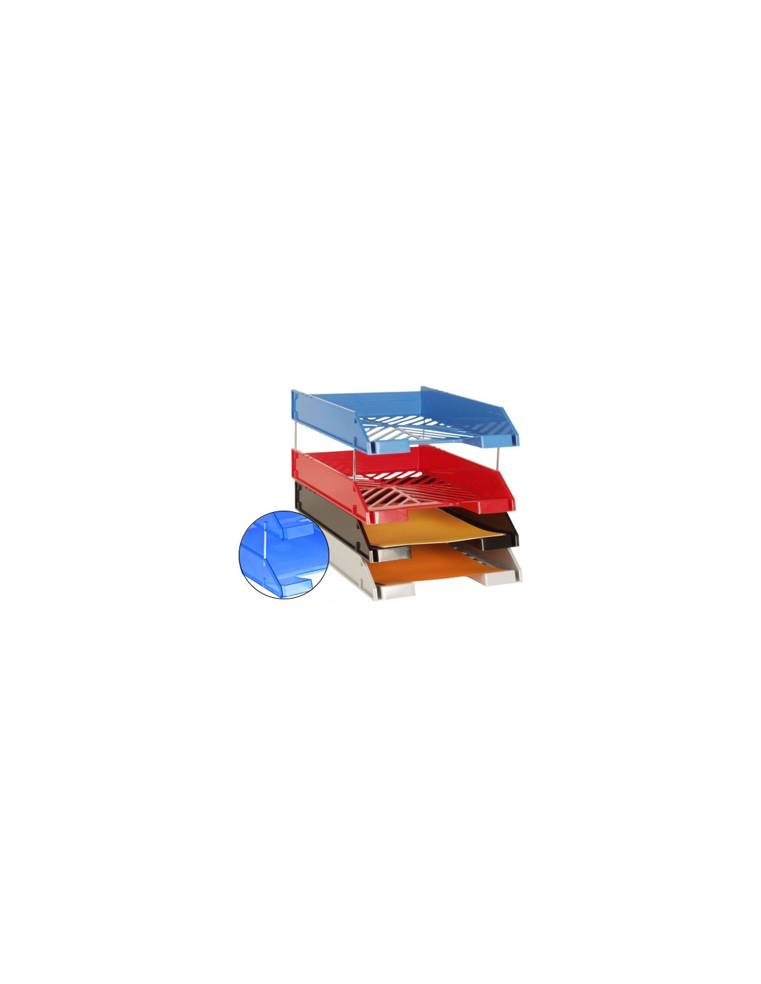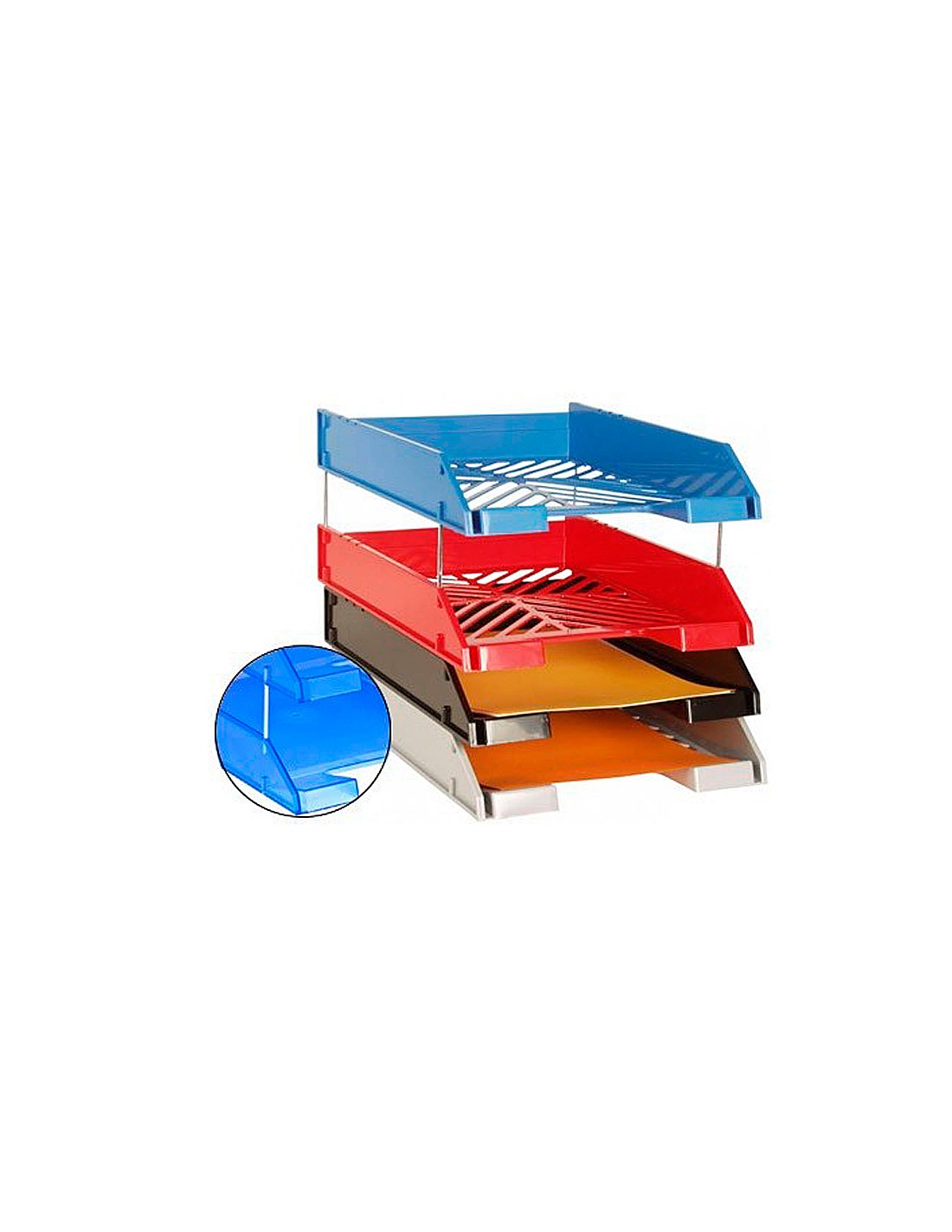 Bandeja con fondo liso. Posibilidad de utilizar varillas elevadoras metálicas que aumentan su capacidad facilitando el acceso a los documentos. Con hendidura frontal para un fácil acceso. Para documentos formatos DIN A4 y folio. Color cristal. Medidas 260 x 60 x 340 mm.