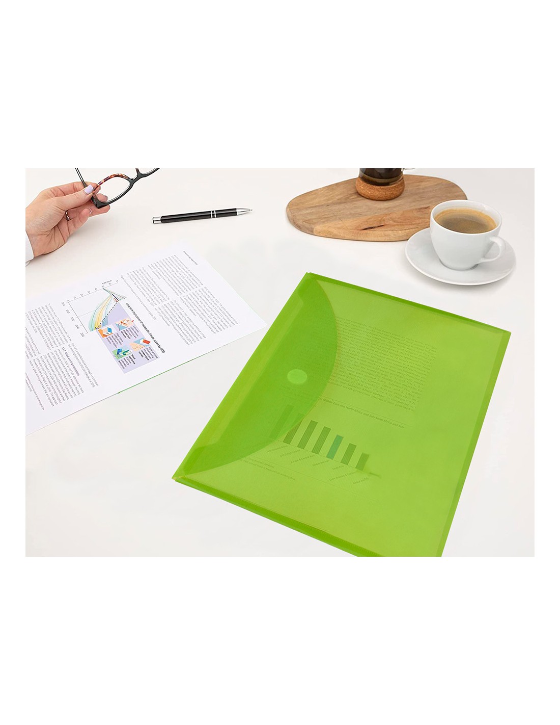 Fabricada en polipropileno. Formato DIN A4. Con cierre de velcro. 180 micras.
