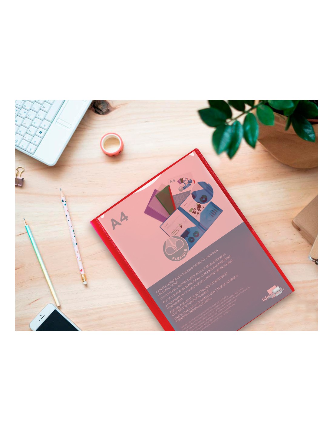 LIDERPAPELCarpeta liderpapel dossier dos bolsas canguro 45680 polipropileno din a4 roja