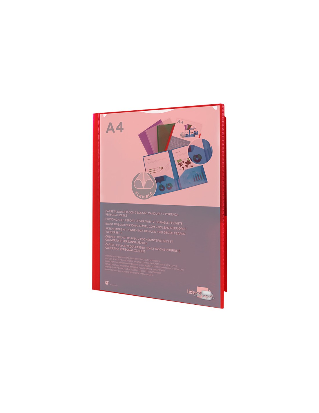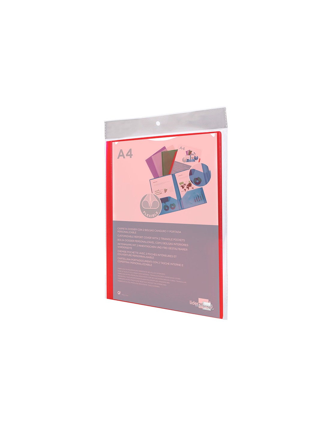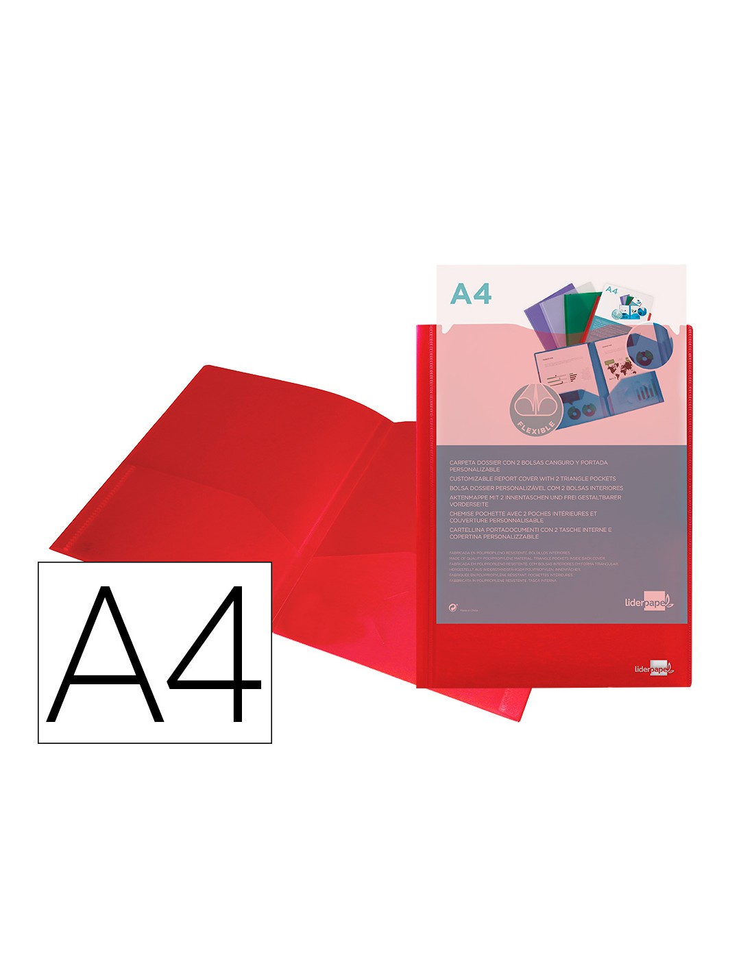 Carpeta liderpapel dossier dos bolsas canguro 45680 polipropileno din a4 roja