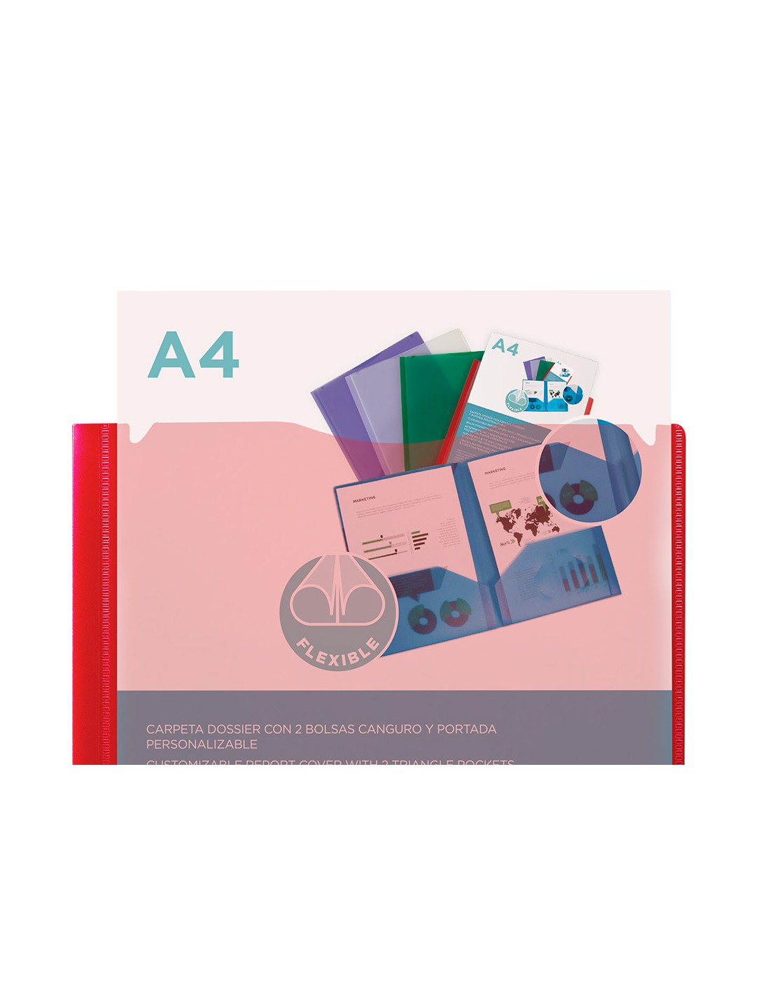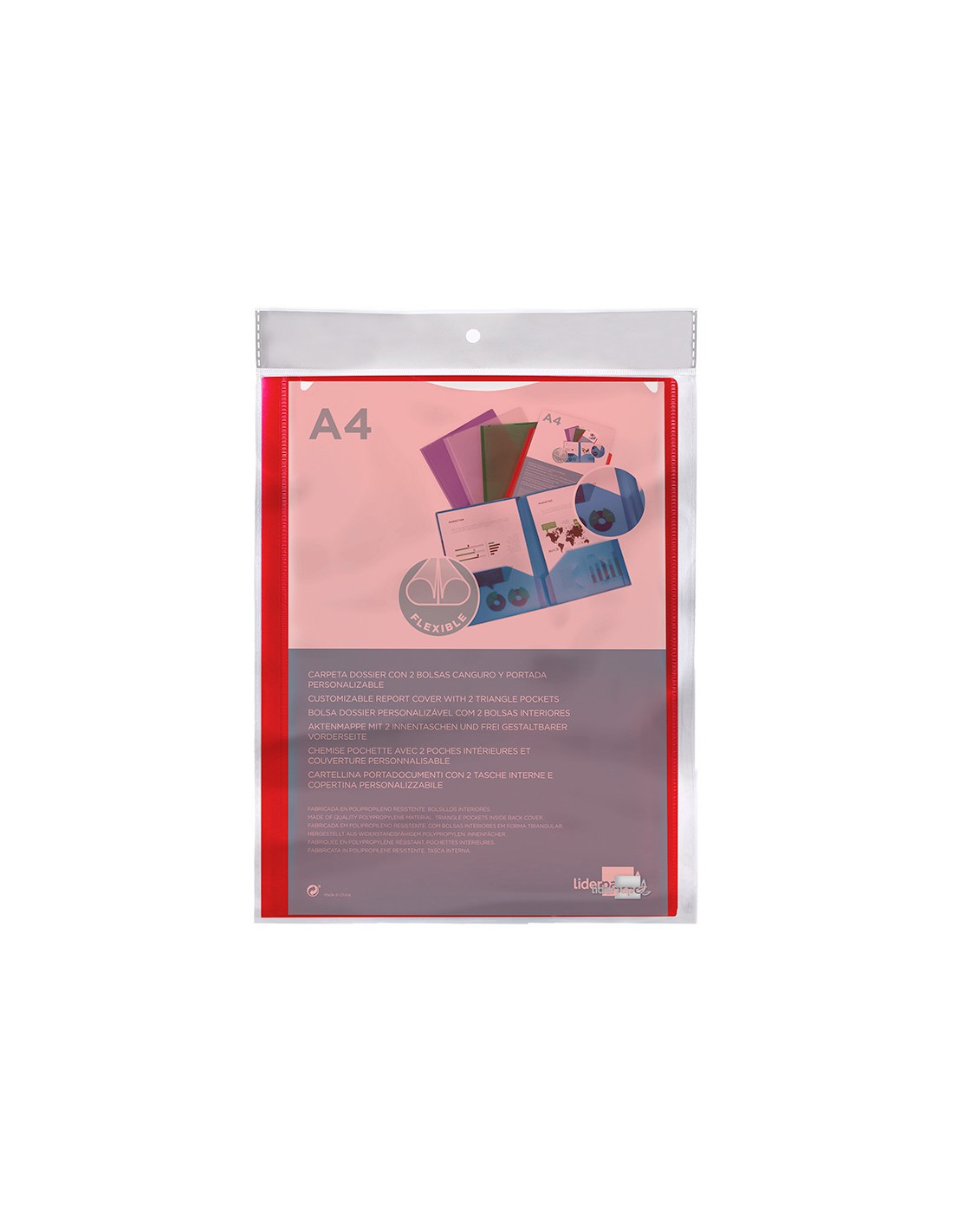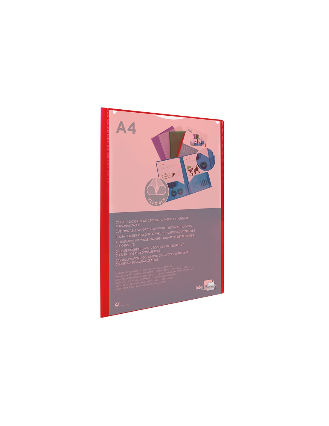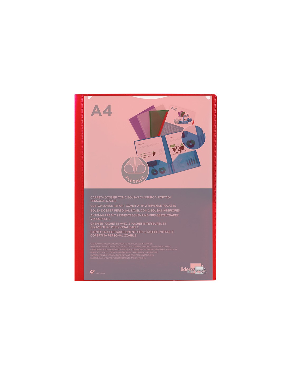 Carpeta liderpapel dossier dos bolsas canguro 45680 polipropileno din a4 roja