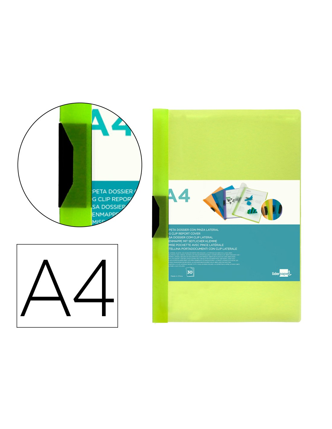 Carpeta liderpapel dossier pinza lateral 45303 polipropileno din a4 verde cla30 hojas pinza deslizante