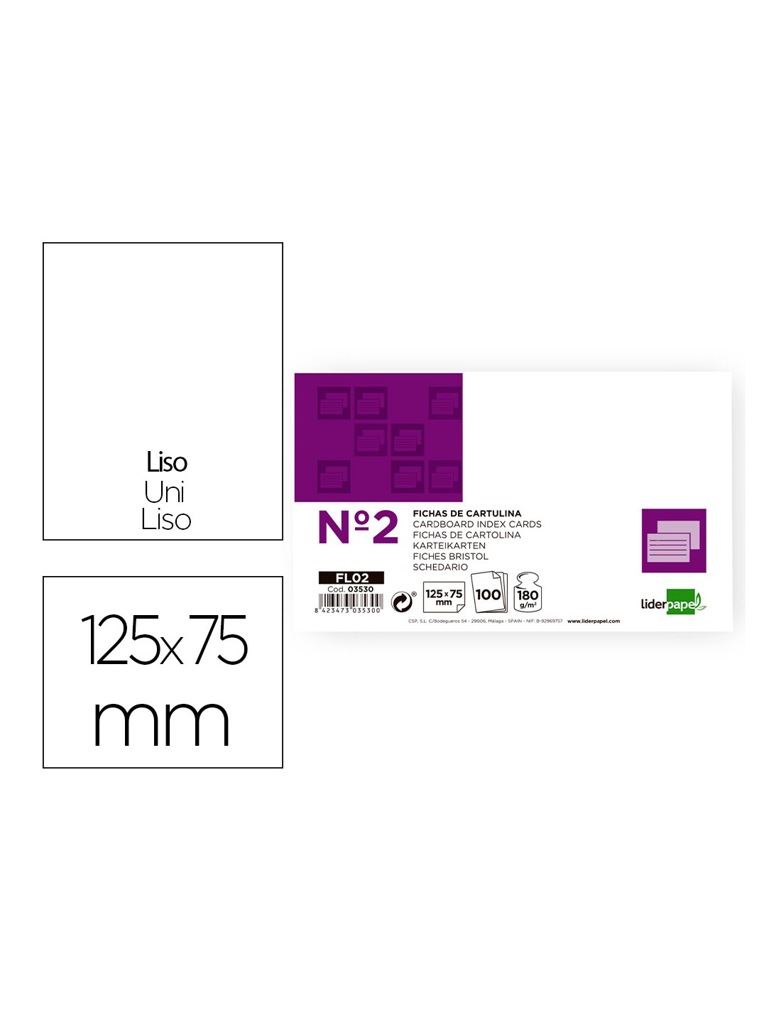 Ficha liderpapel lisa nº2 75 x 125mm paquete de 100 180g