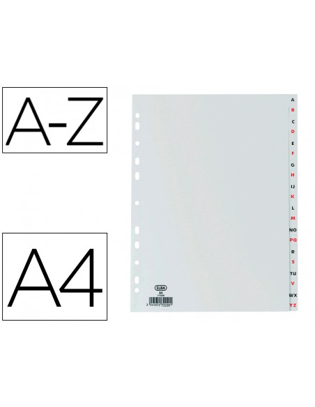 Separador alfabetico elba plastico 120 mc folio 16 taladros a-z gris
