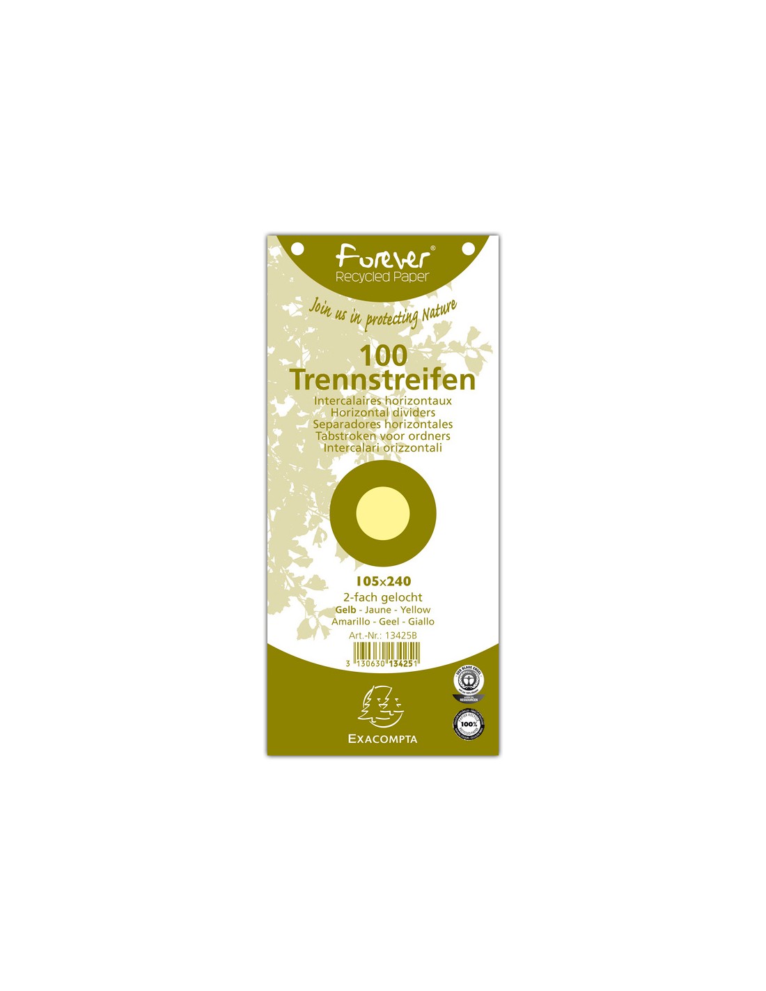 Separador exacompta cartulina de 180 gr juego de 100 separadores 105x240 mm con 2 taladros color amarillo