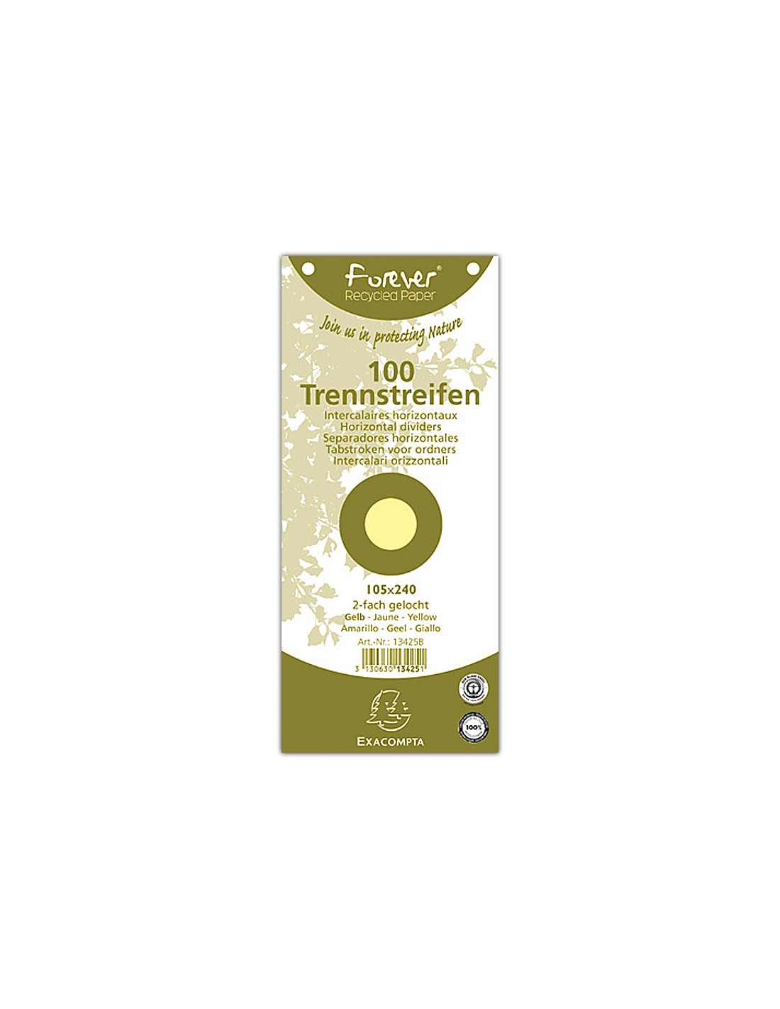 Separador exacompta cartulina reciclada juego de 100 separadores 105x240 con taladros colores surtidos