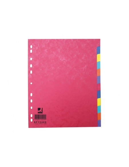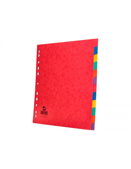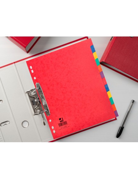 Juego de separadores fabricado en cartulina brillo de color de 225 g/m². Disposición en escalera para agilizar la consulta e identificación de documentos. Multitaladro para archivar en diferentes mecanismos de anillas. Colores vivos opacos. En formatos DIN A4 y A4+.