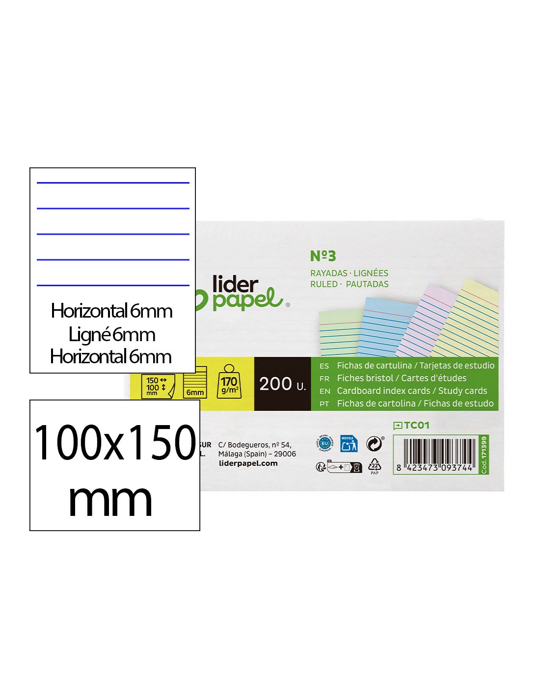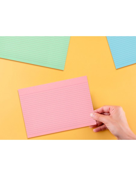 Tarjeta liderpapel para estudiar rayada cartulina de colores 170 gr/m2 100x150mm paquete de 200 unidades